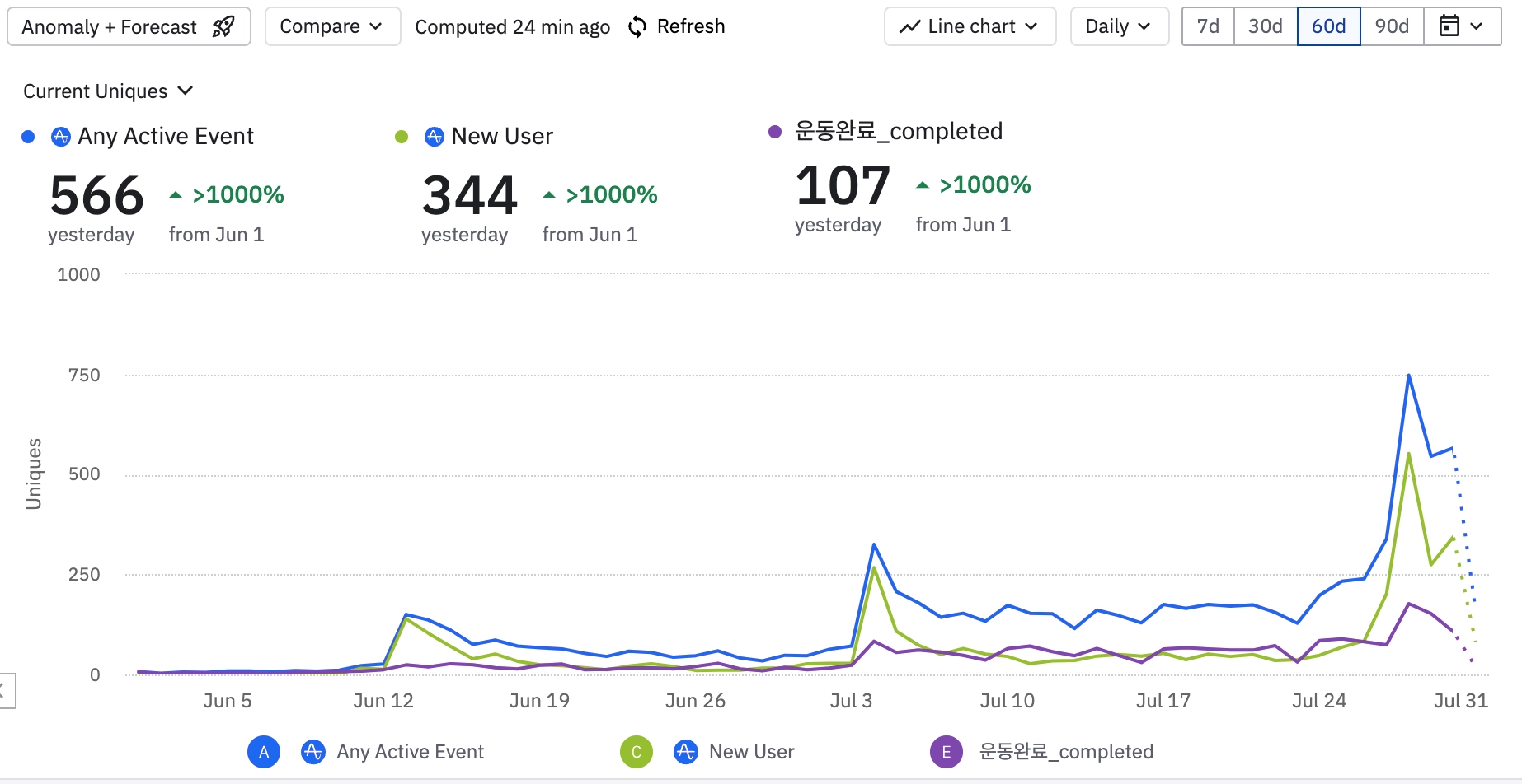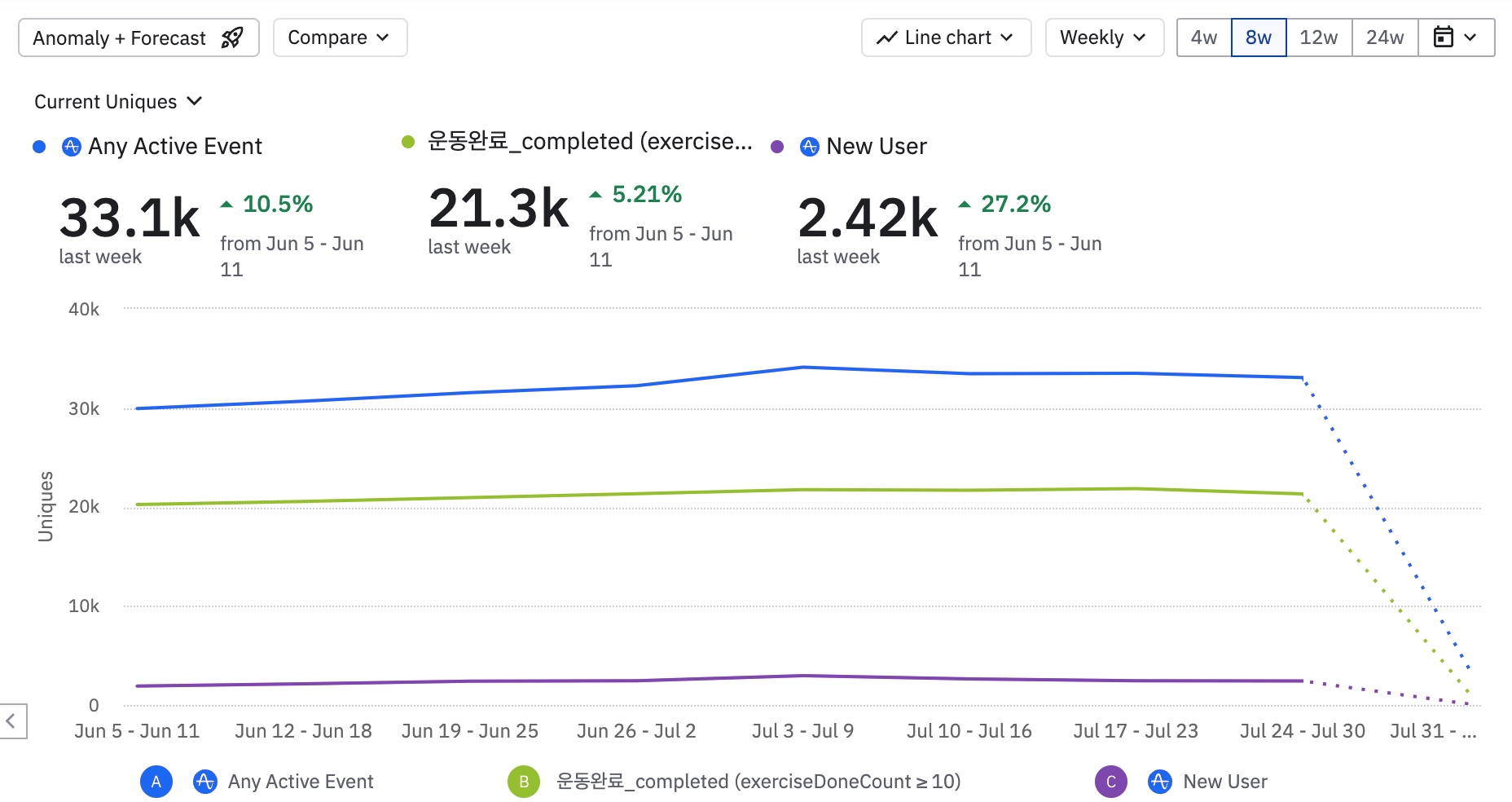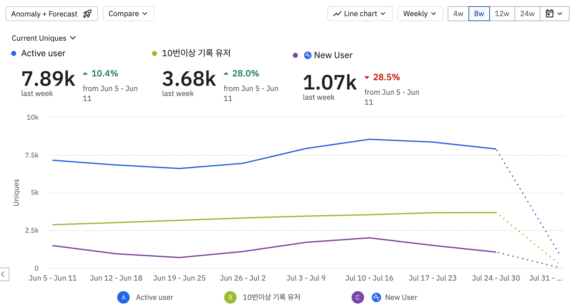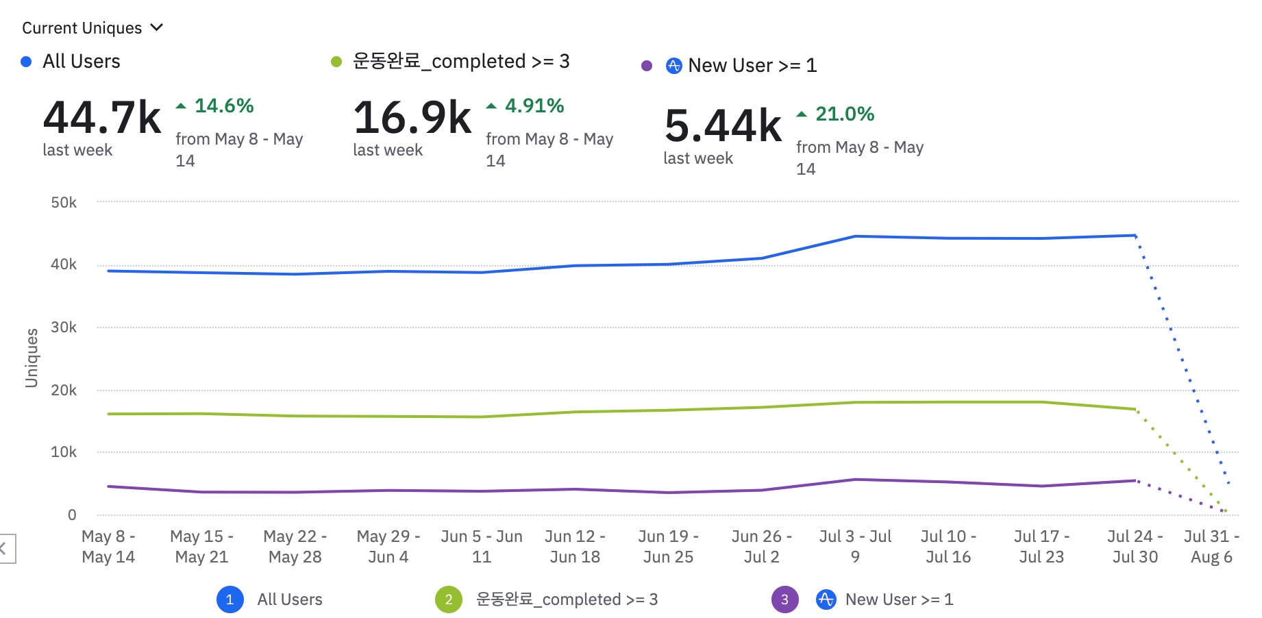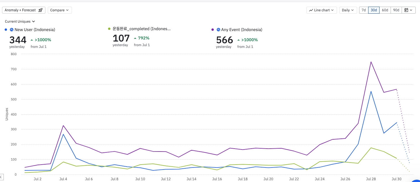 신규 유저는 늘었으나 해당 유저들의 1주 retention 이 어찌될지를 잘 봐야할듯.