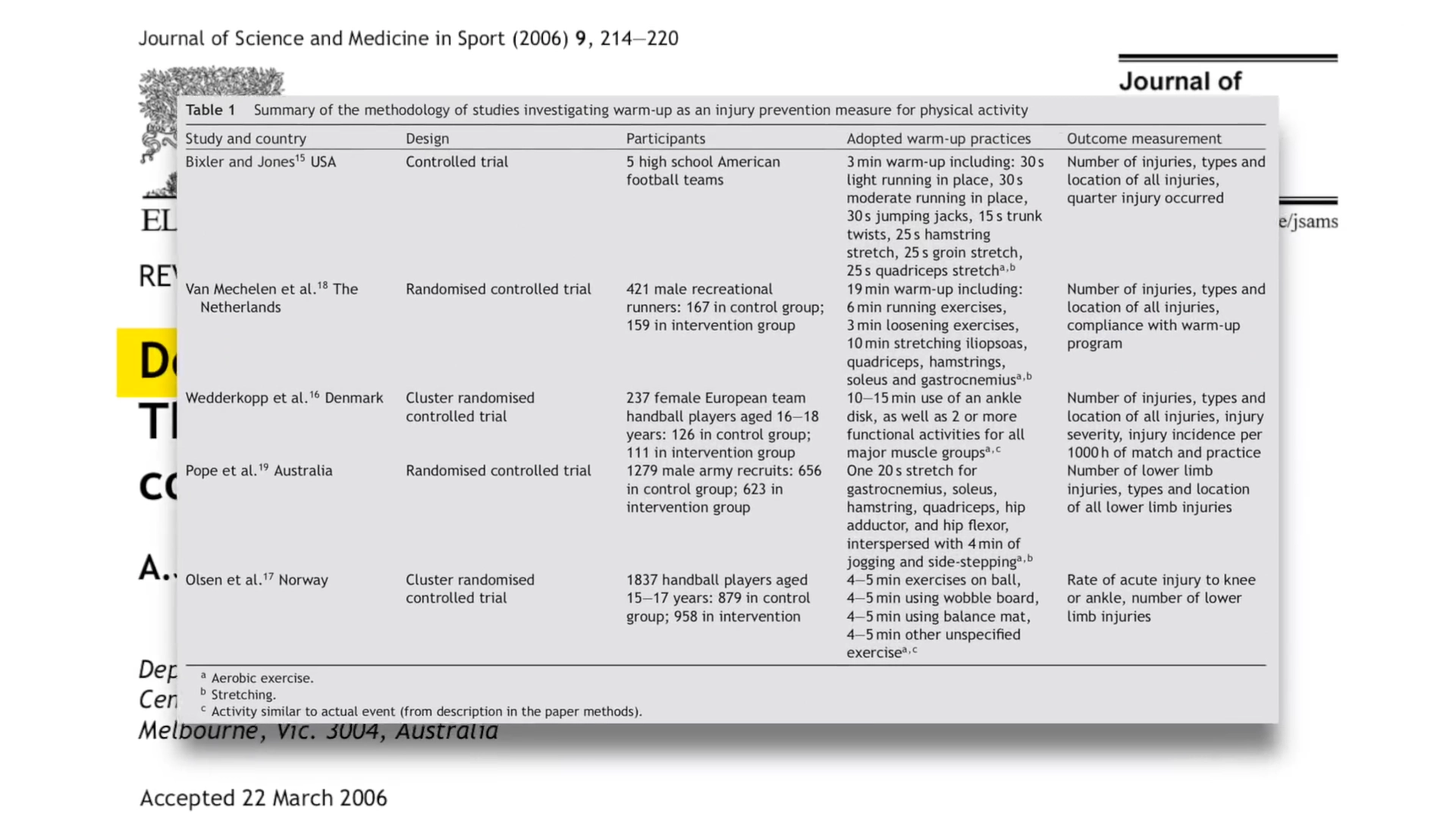 웜업과 스트레칭에 대한 가장 유명한 논문은 2006년 호주의 모나시 대학에서 진행한 연구입니다,