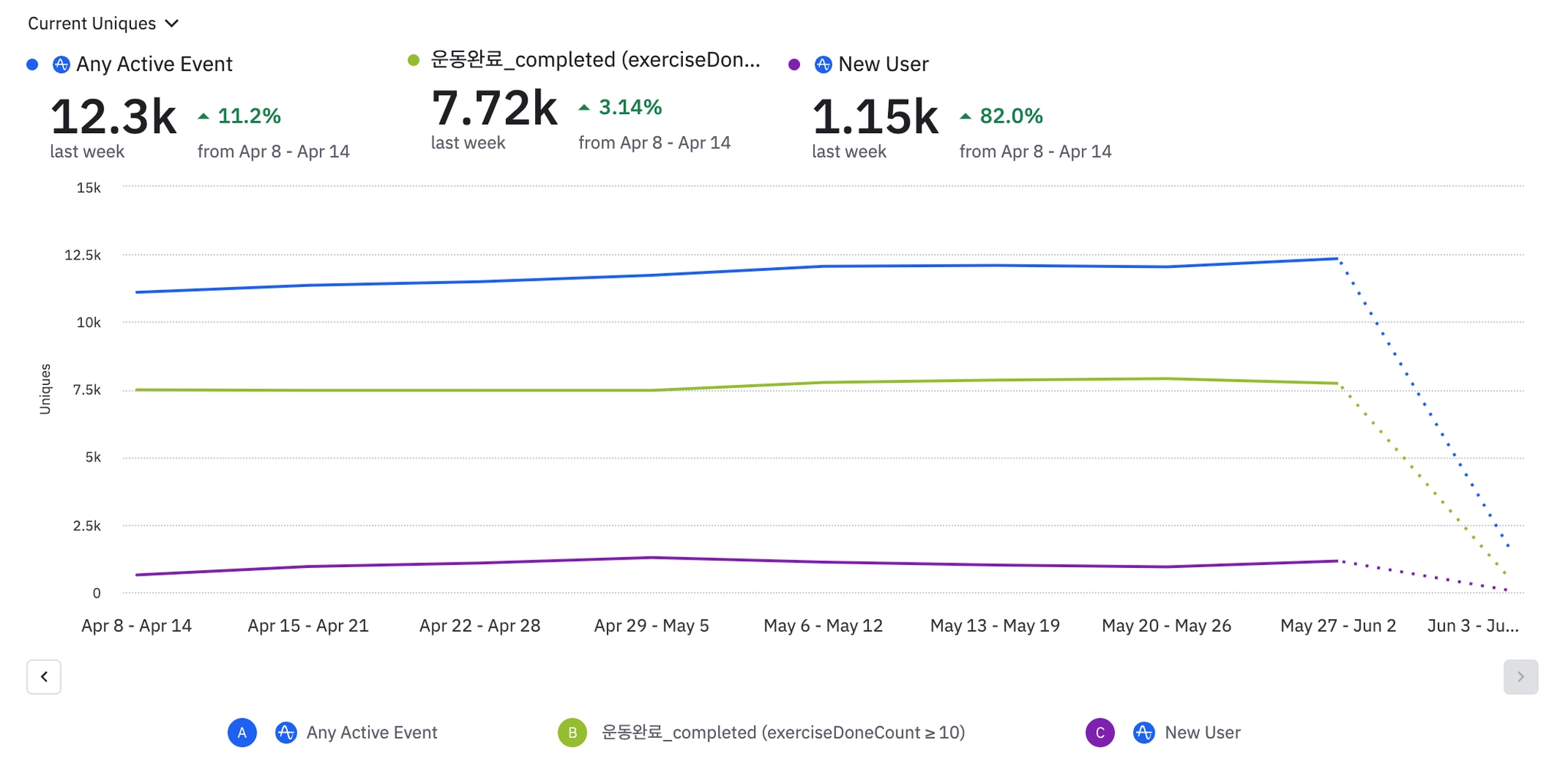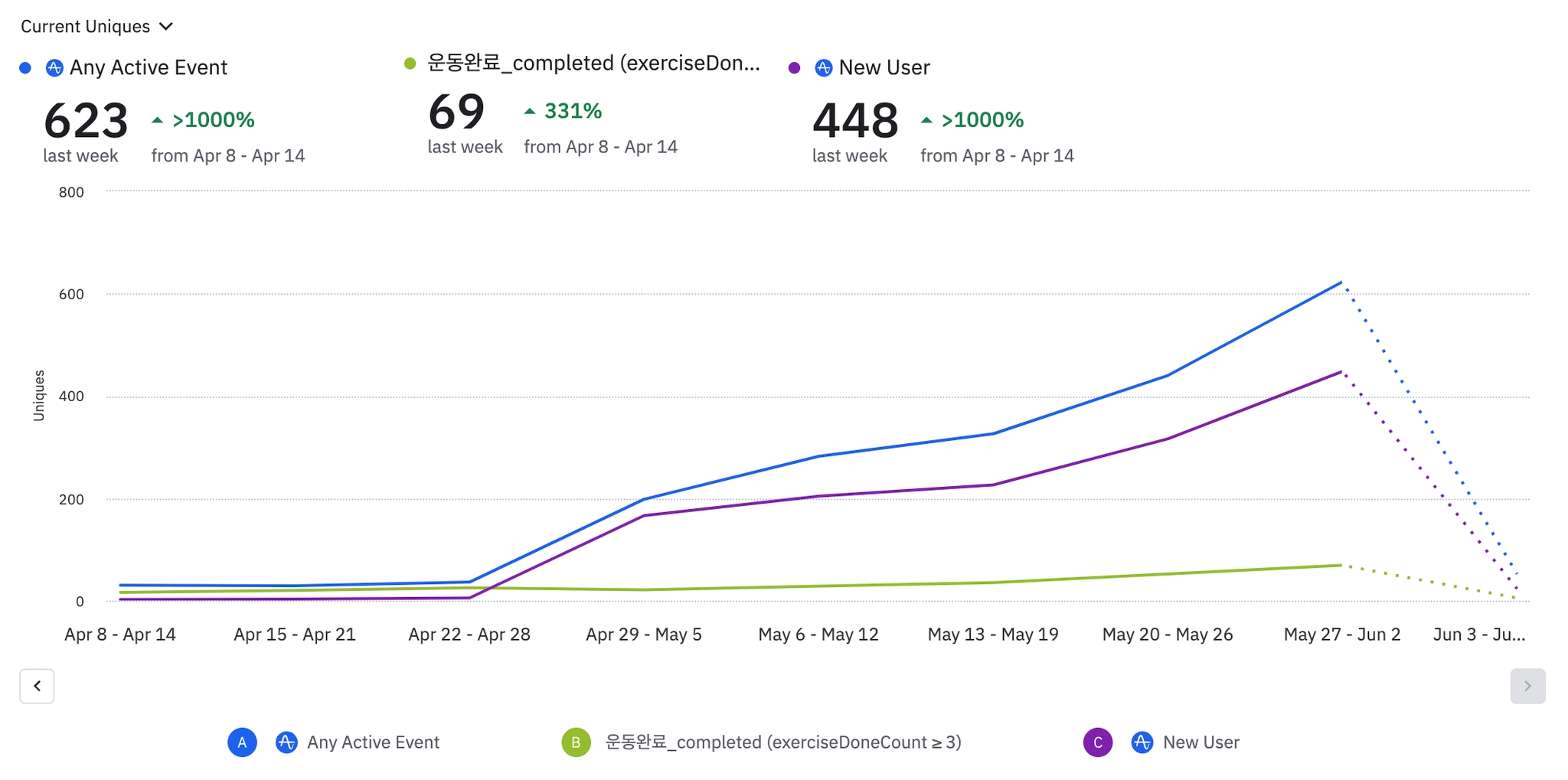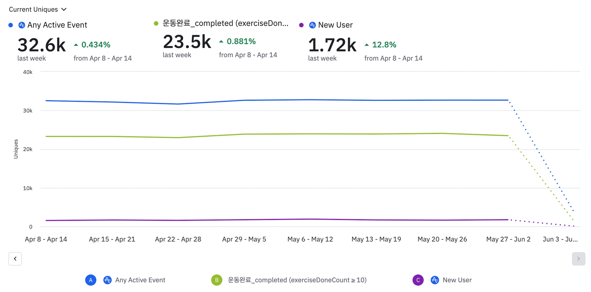 광고 진행시보다 보다 신규유저는 높음. 금주까지 확인 후 최종 비용 비교