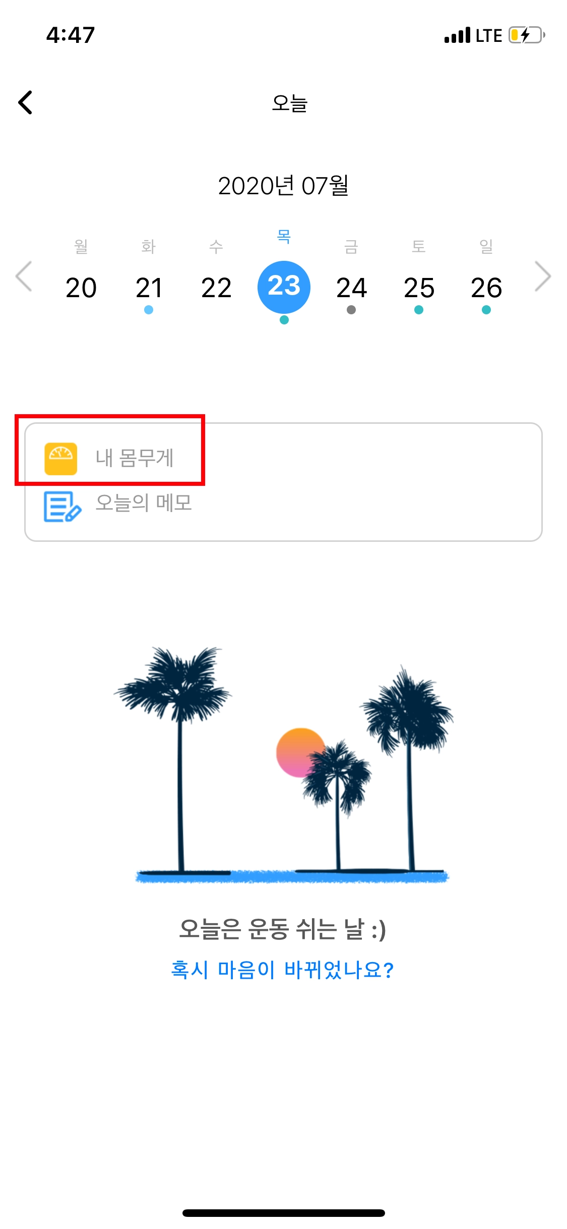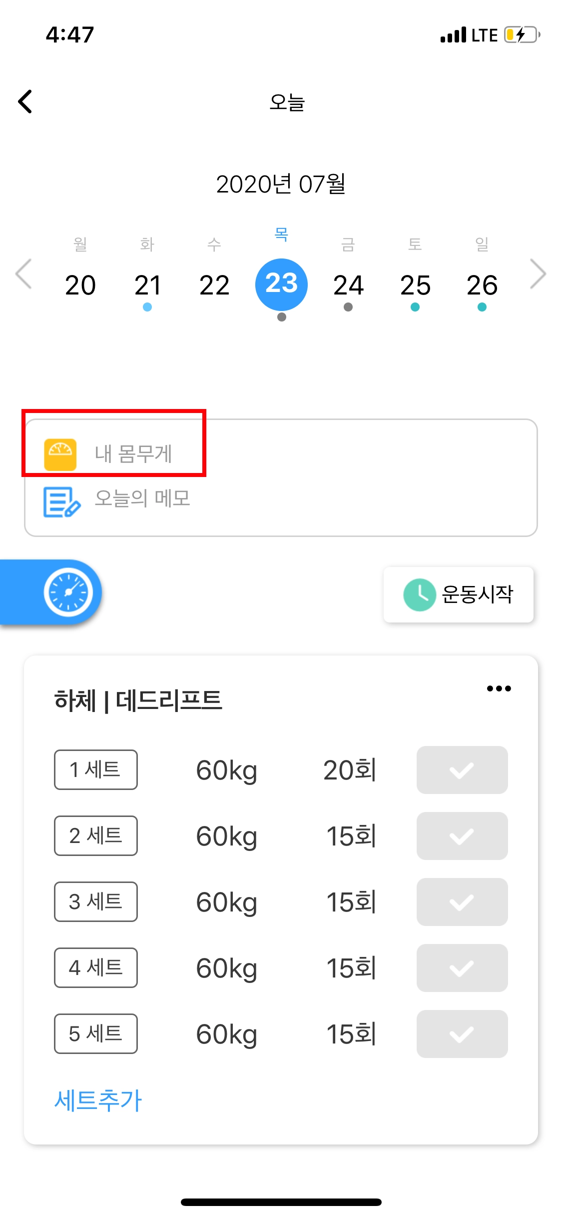 많은 분들이 요청주셨던 몸무게 기록 기능이 추가 되었습니다.