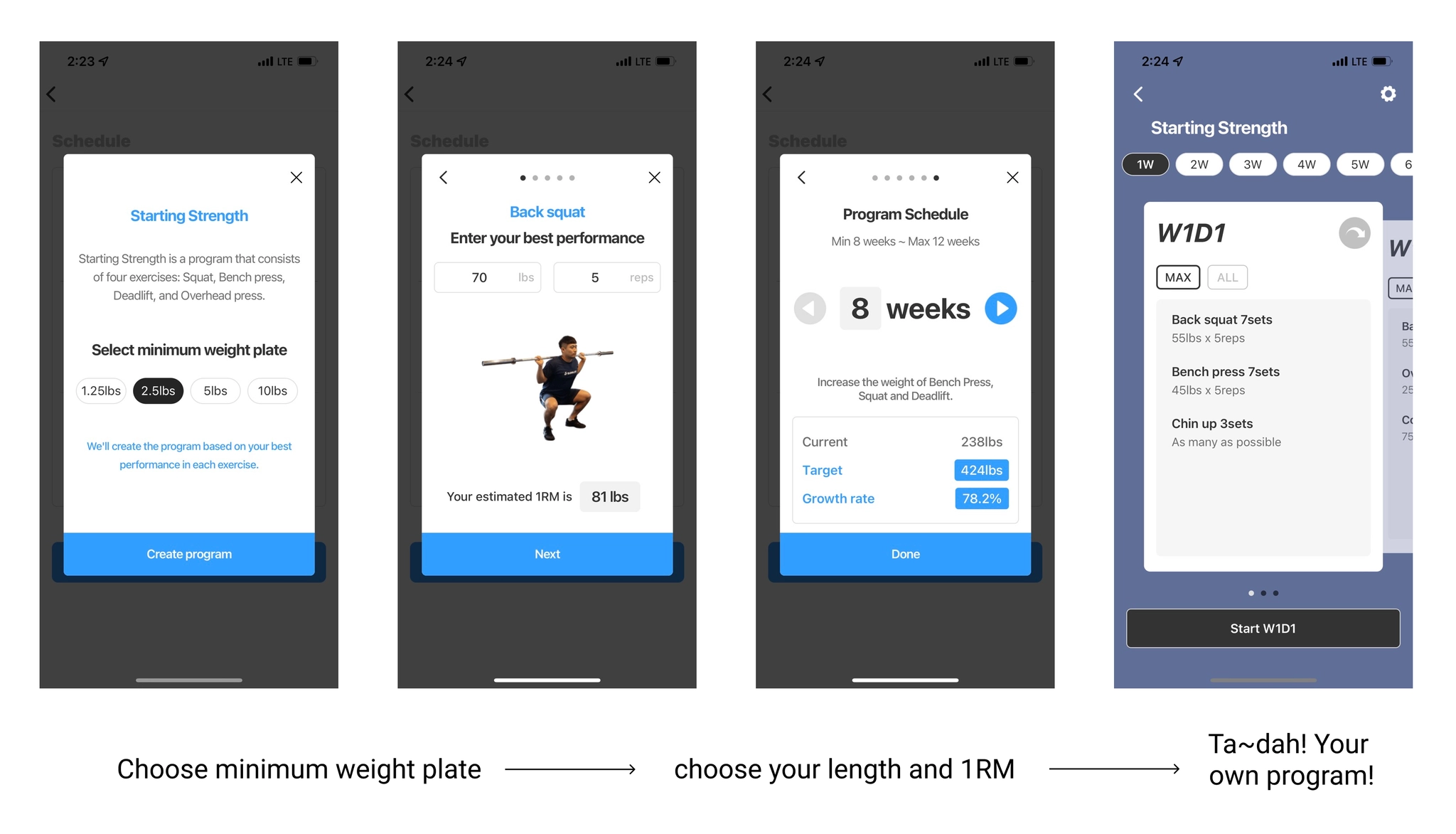 Once you input your 1RM (one repeat max) on the program page, Burn.Fit will provide you with tailored programs that suit your workout ability with just a few clicks. No more pen and paper. All you need is Burn.Fit on your phone.