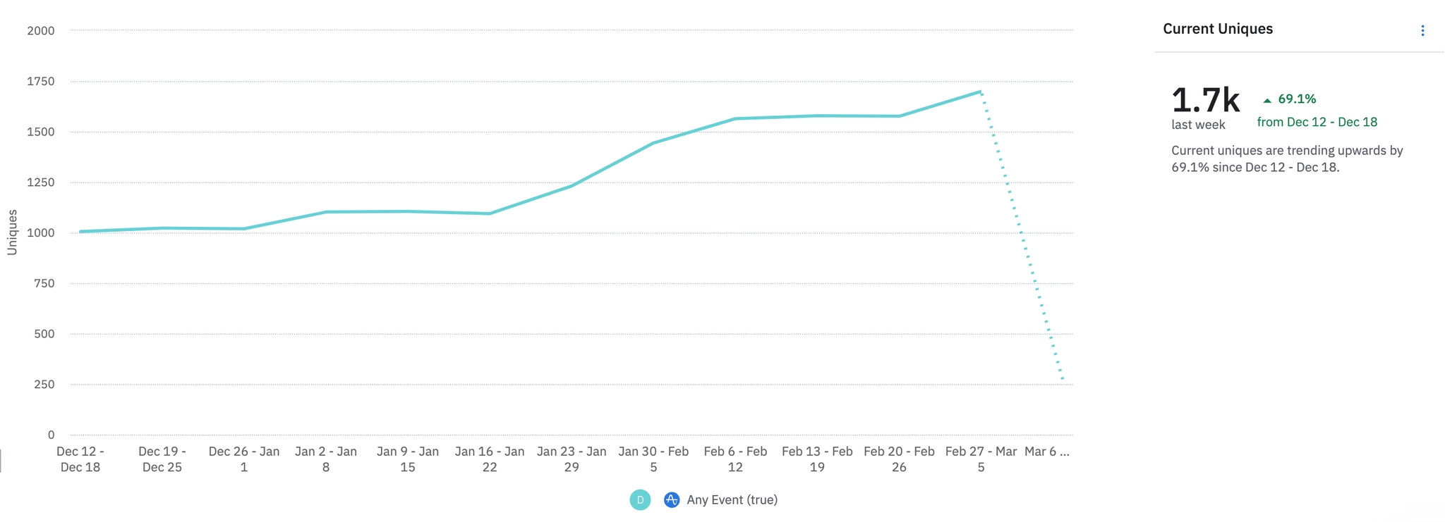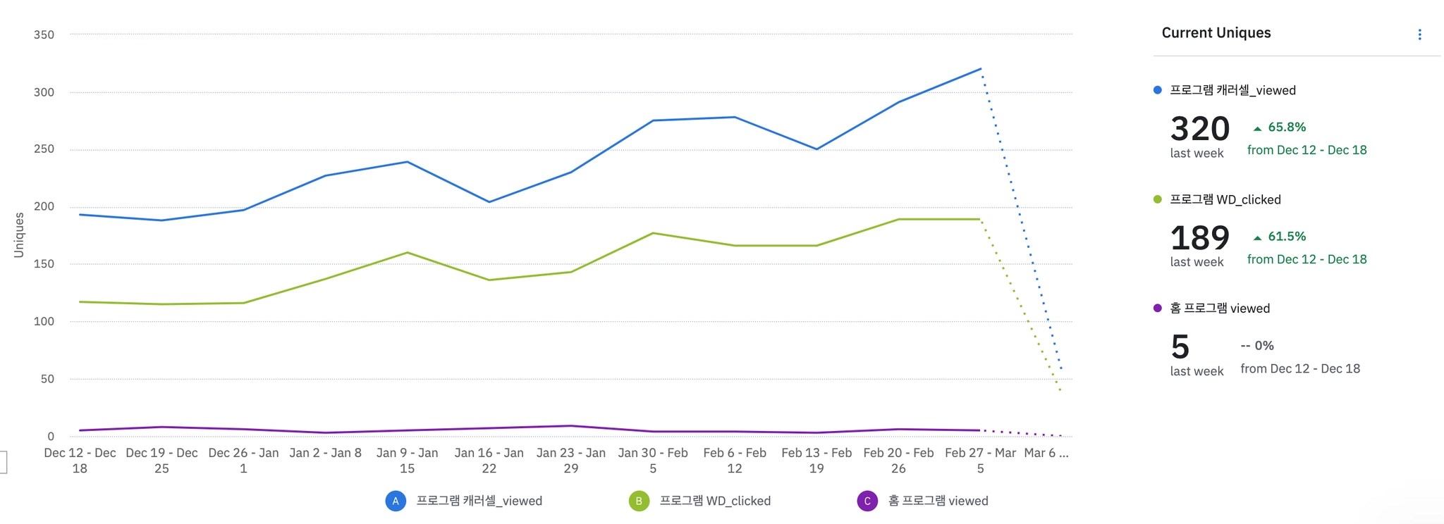 1월 3주차 | 2083 | ₩35,000 | 613 | ₩666,904 | 261 | -23.68% | 352 | -9.28% | ||