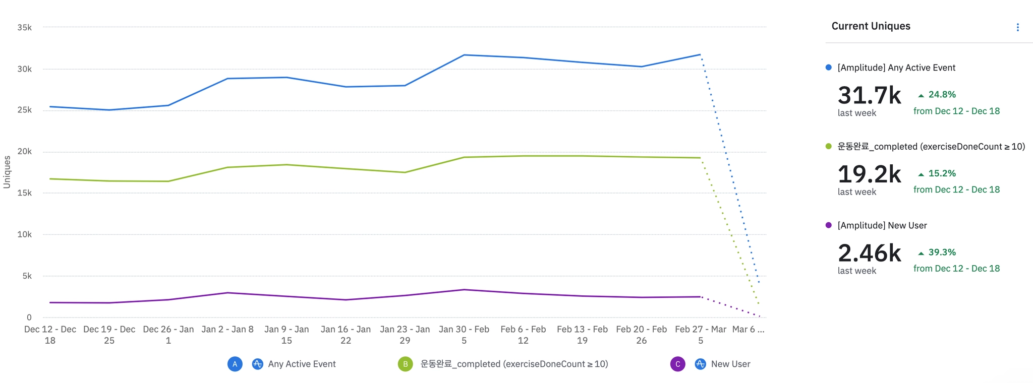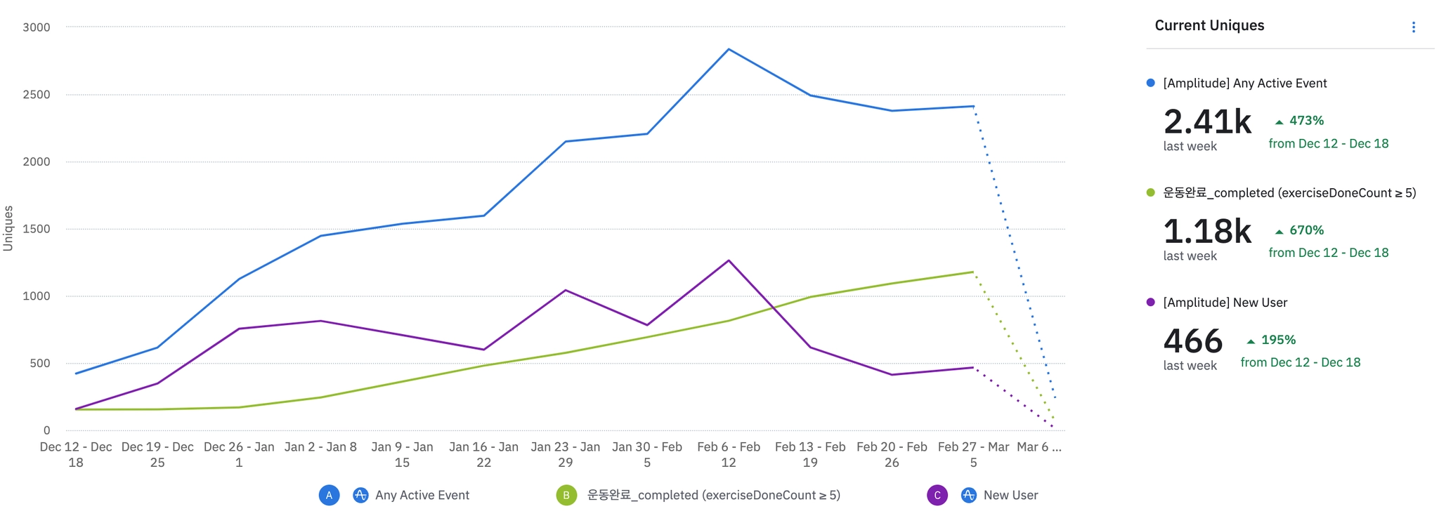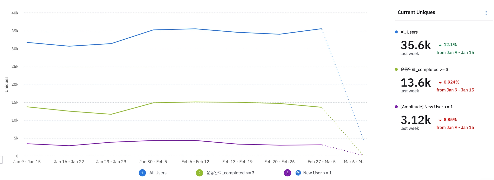 N.S.M - 일주일에 운동완료 3회이상한 유저 숫자