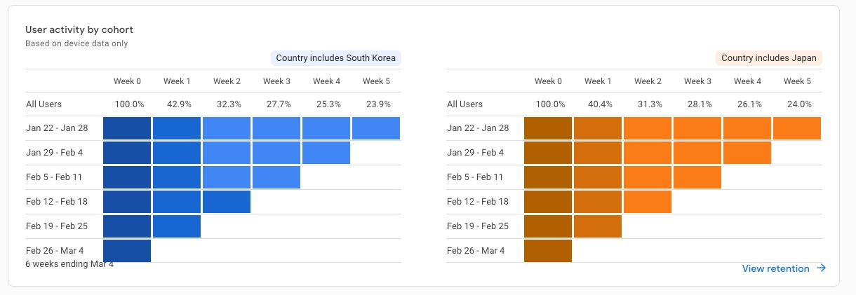 한국 신규유저 | 한국 Paid | 일본 신규유저 | 일본 Paid | Paid | Organic | |||||
