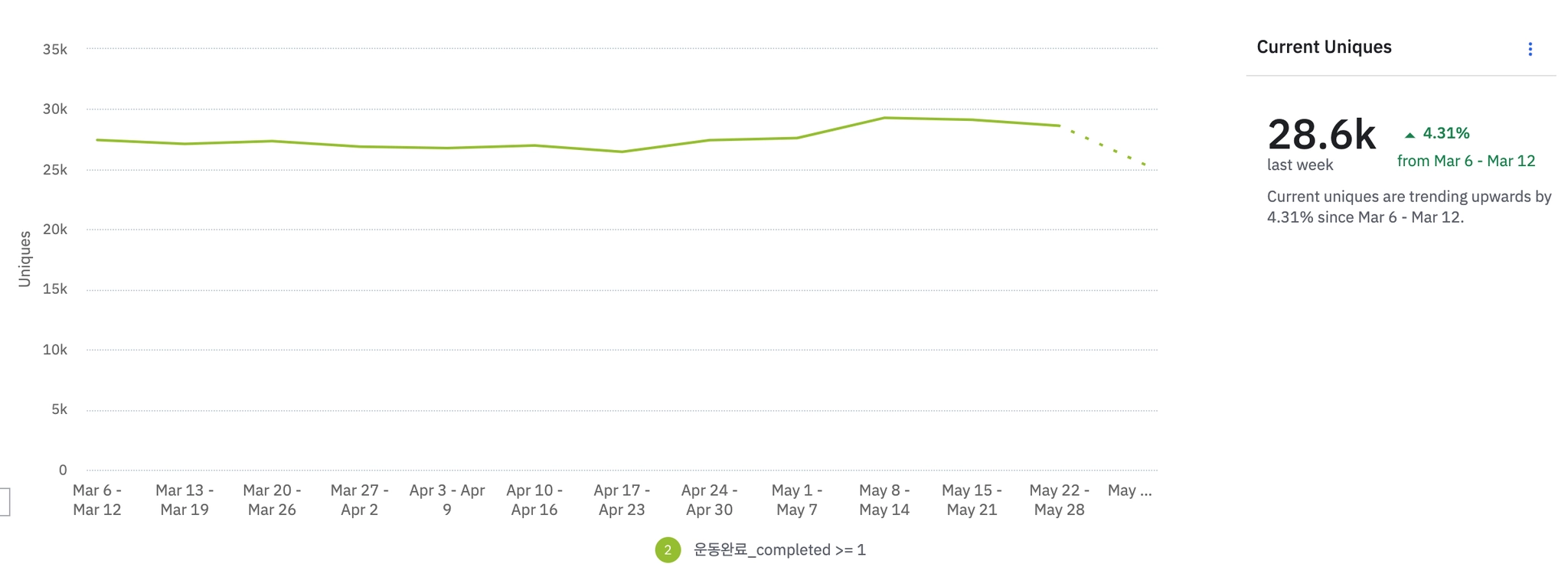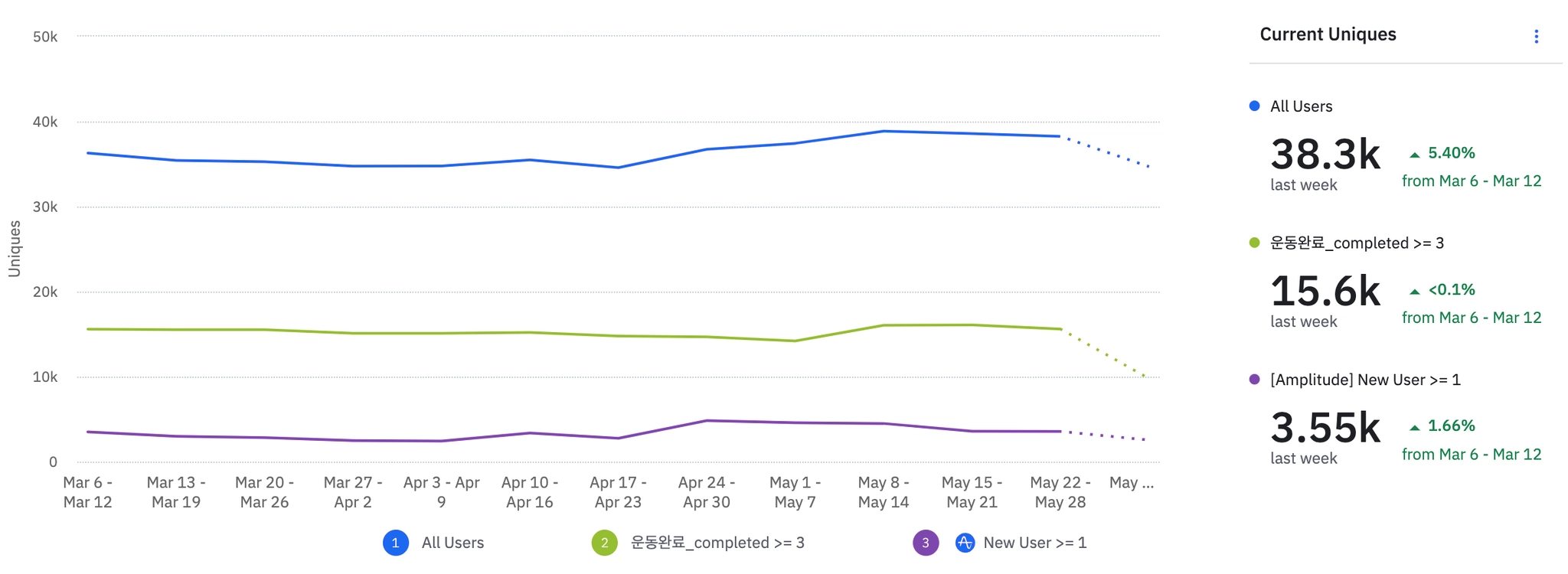 WAU, 운동완료(3회이상), 신규 유저