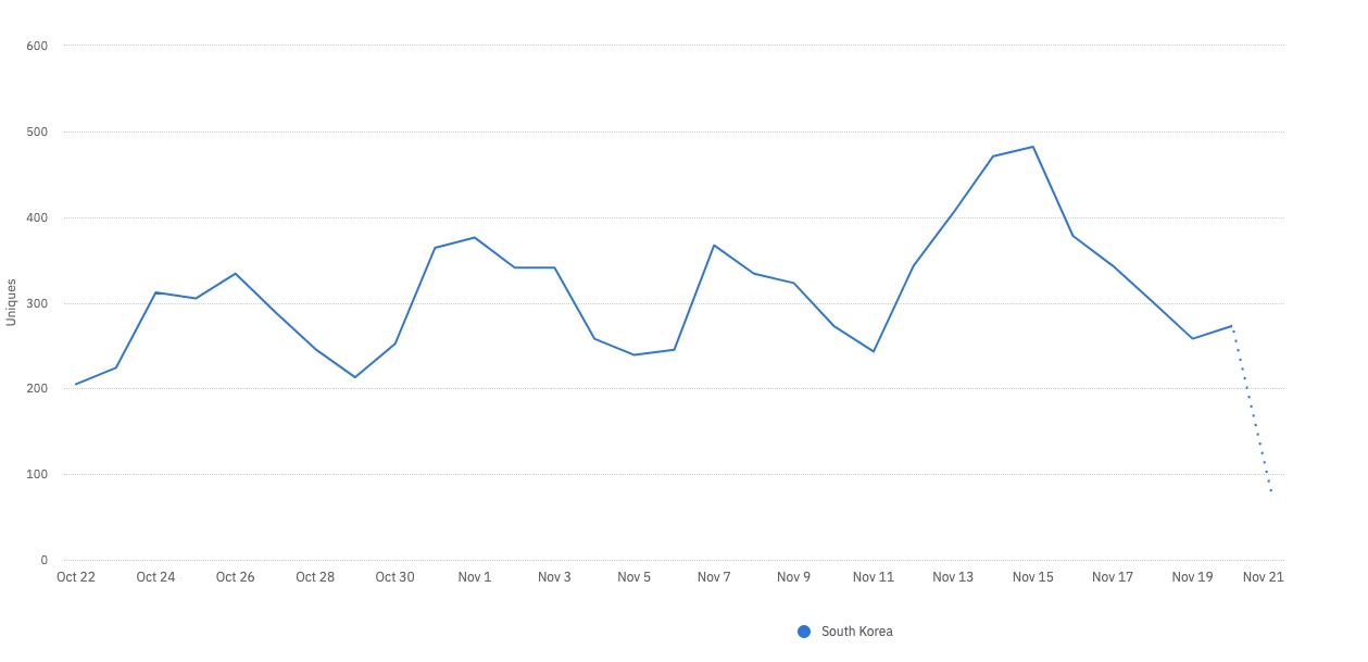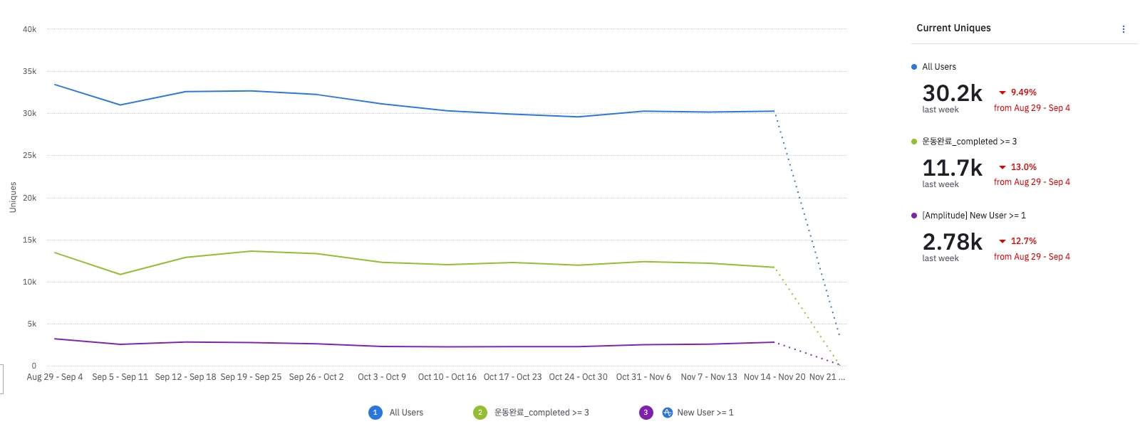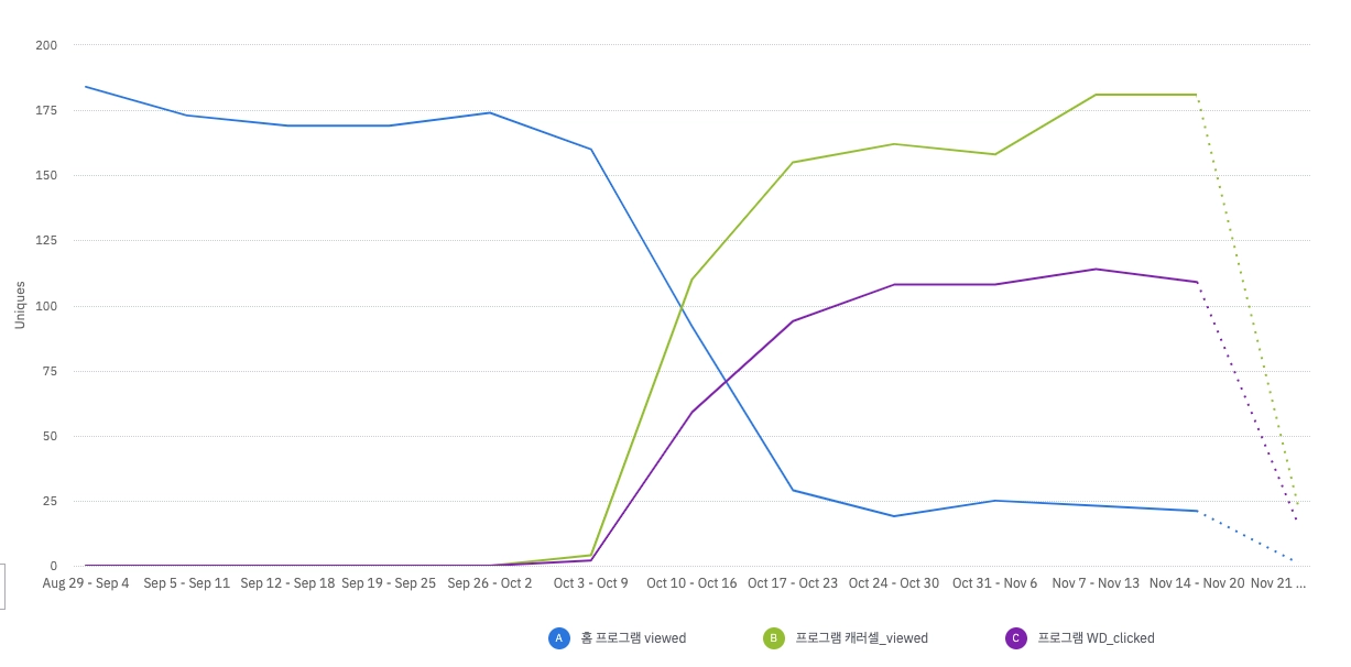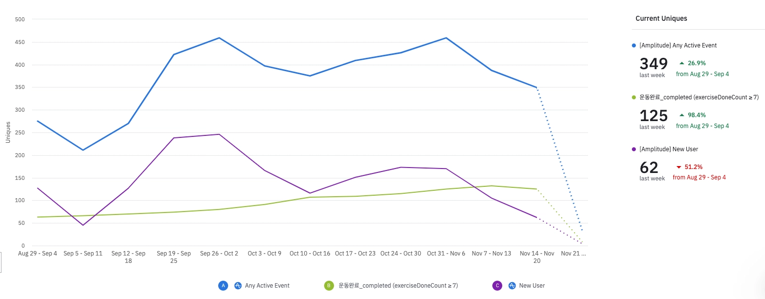 해당 기간(11.12 ~ 11.20) 추가된 신규 유저 숫자: 750명