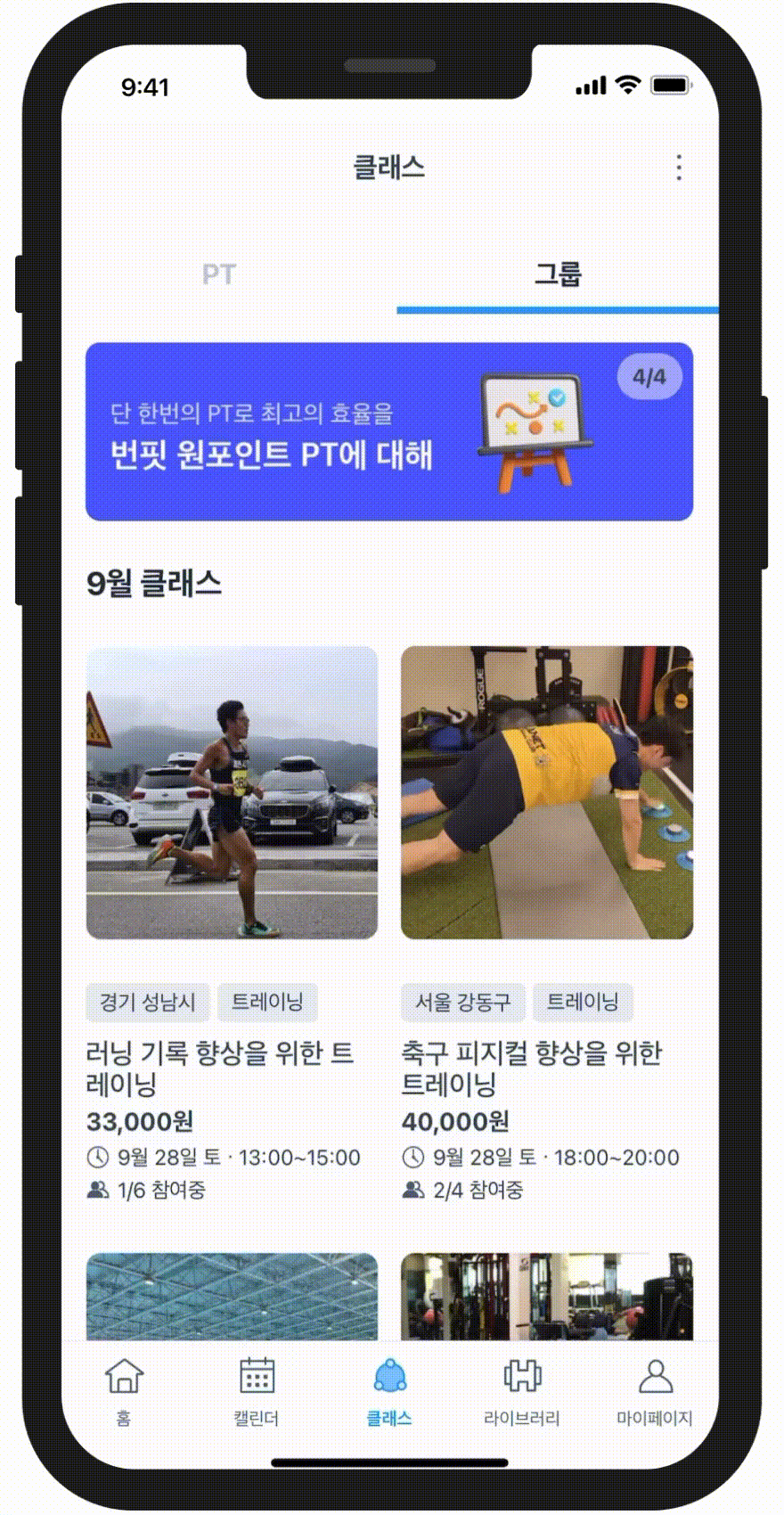 혼자서는 힘들었던 운동, 함께라면 더욱 재밌게 즐길 수 있죠. 이제 그룹 클래스로 운동 능력을 향상 시켜봐요!