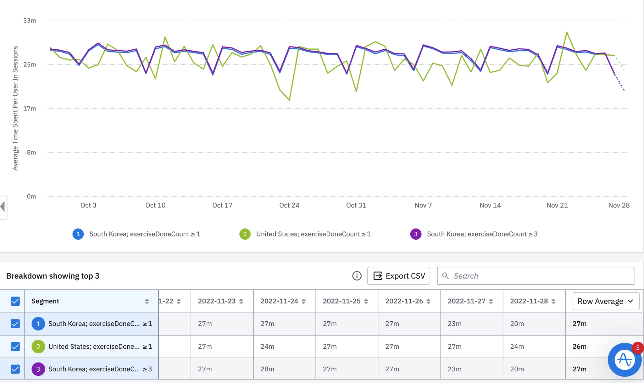 앱 체류 시간: (Amplitude 기준) 26~27분 → 31~32분
