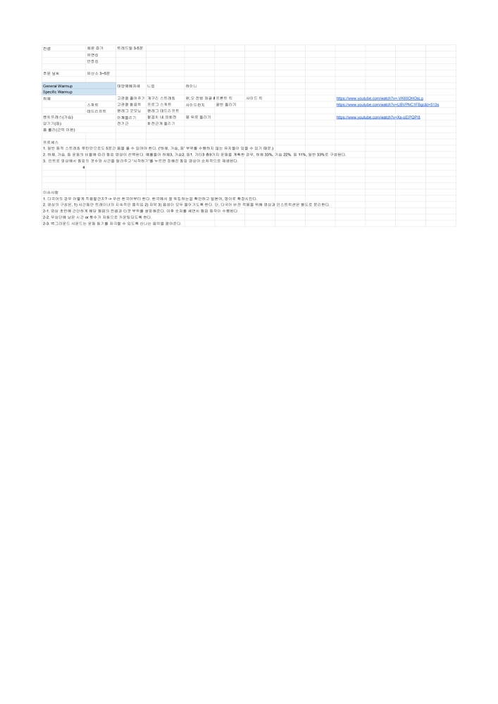 영상 종류: 운동별(스쿼트, 데드리프트, 벤치프레스, 풀업, 밀리터리프레스 등) 특화된 스트레칭 영상을 통해 웜업 방법의 다양화.