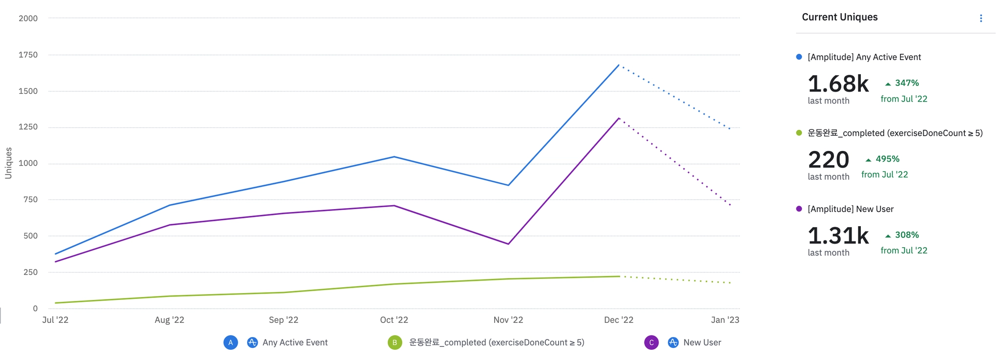 22년 운동 현황을 공유하여 한해를 되돌아보고 새해 목표를 다짐할 수 있는 포로모션 진행 완료.