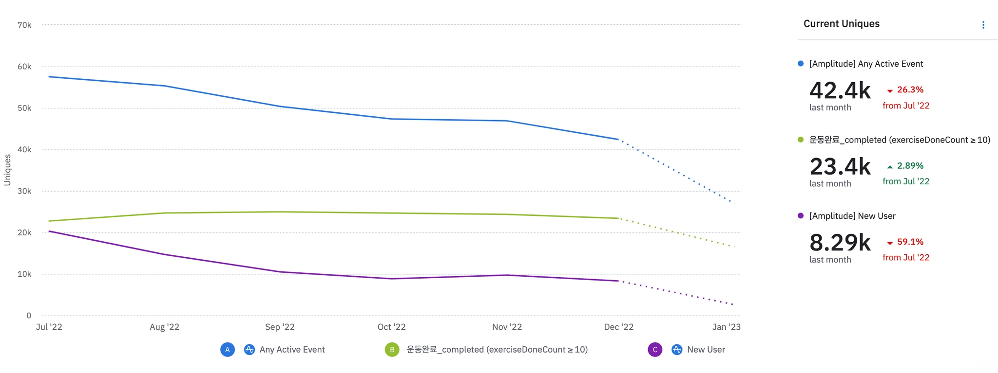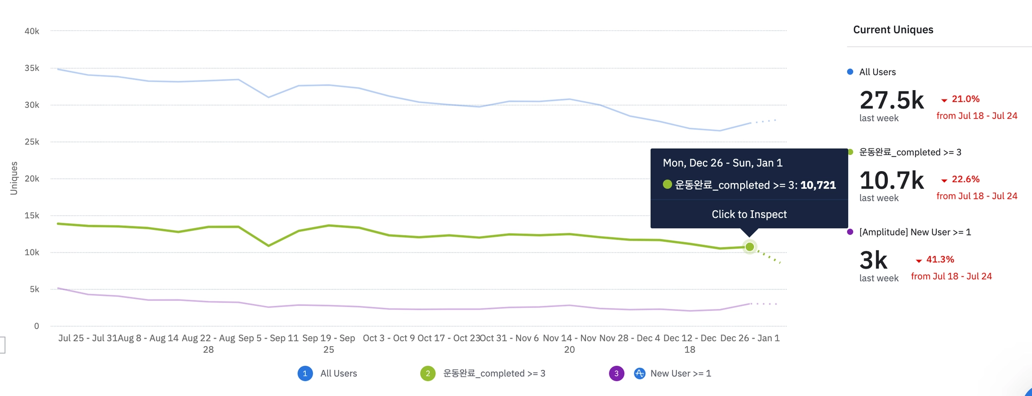 0. North Star Metric (1주일에 3번이상 운동 일지 작성하는 유저 수)