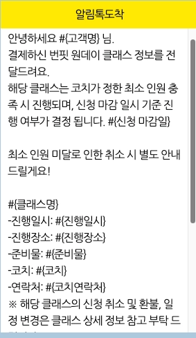 해당 클래스는 코치가 정한 최소 인원 충족 시 진행되며, 신청 마감 일시 기준 진행 여부가 결정 됩니다. #{신청 마감일}