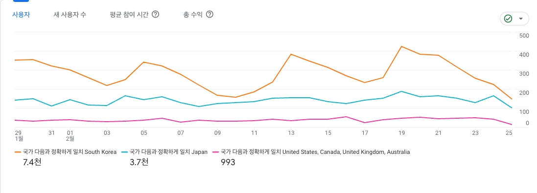 한국 신규유저 | 일본 신규유저 | 미국 & 캐나다 | |