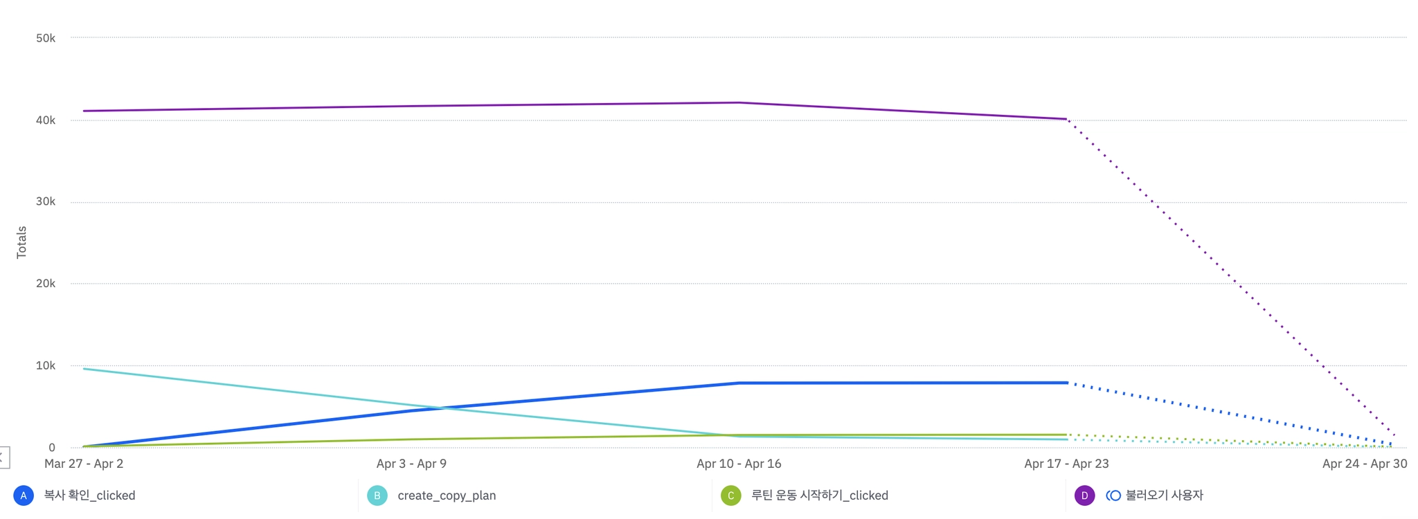 루틴 사용 현황 - 불러오기, 복사, 루틴 사용 비율