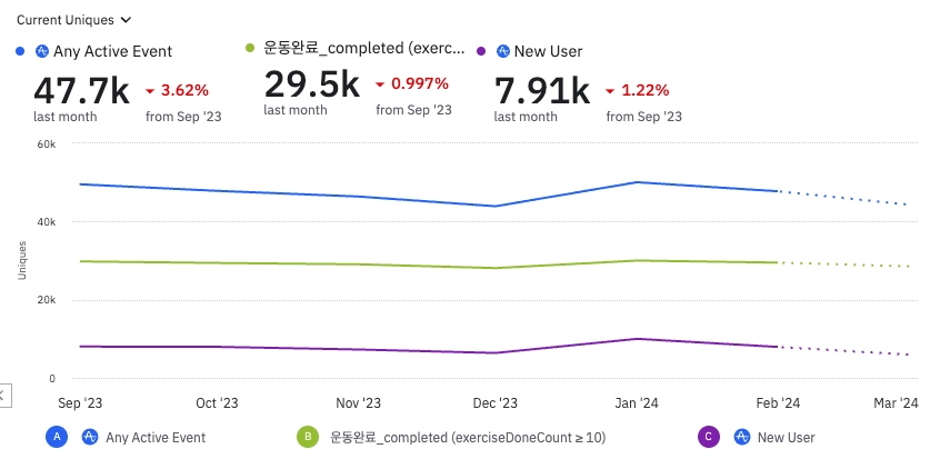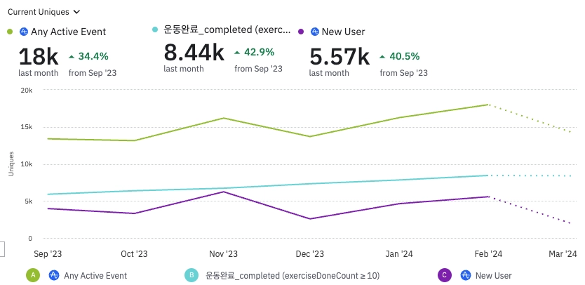 PG사 승인 이슈로 출시 일정이 지연되었습니다. 3월내 원데이 클래스 출시를 통해 운동 습관화를 도와줄 수 있는 오프라인에서의 연결을 테스트하고자 합니다.