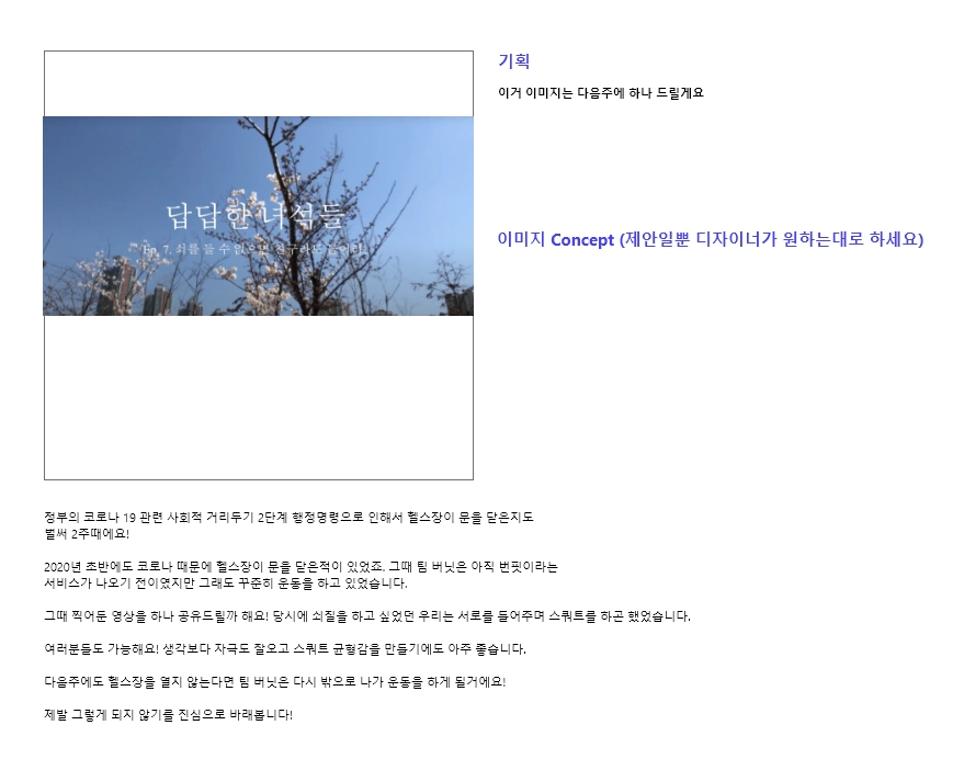 지난주 팀 버닛은 사회적 거리두기로 인해 쇠질을 2주째 못했었죠.