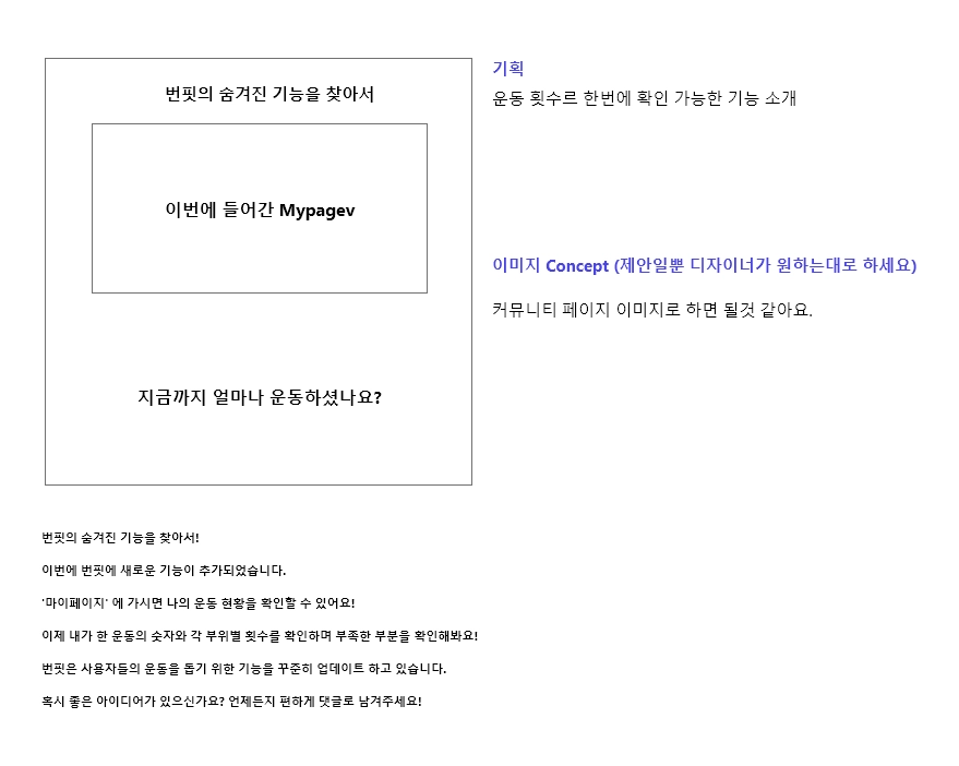 번핏은 사용자들의 운동을 돕기 위한 기능을 꾸준히 업데이트 하고 있습니다.