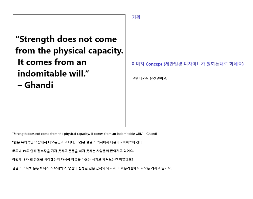 "힘은 육체적인 역량에서 나오는것이 아니다. 그것은 불굴의 의지에서 나온다 - 마하트마 간디
