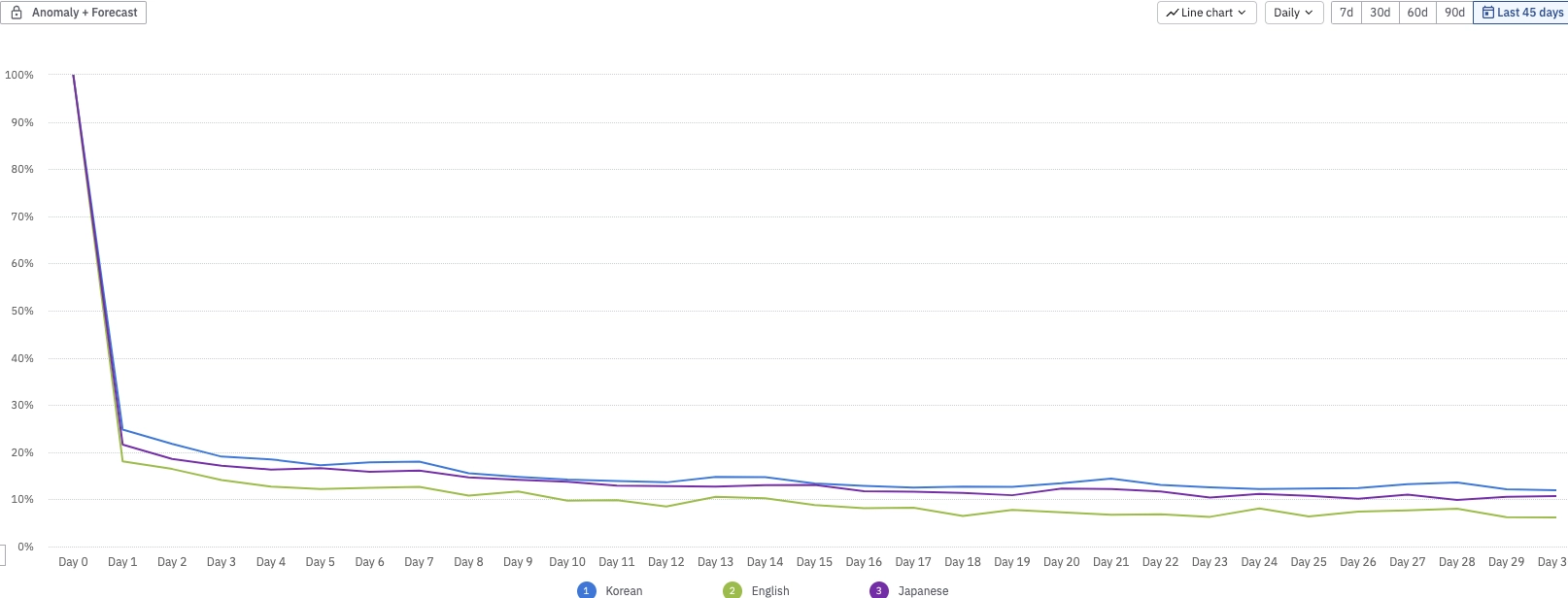 한국 신규유저 | 한국 Paid | 일본 신규유저 | 일본 Paid | Paid | Organic | |||||