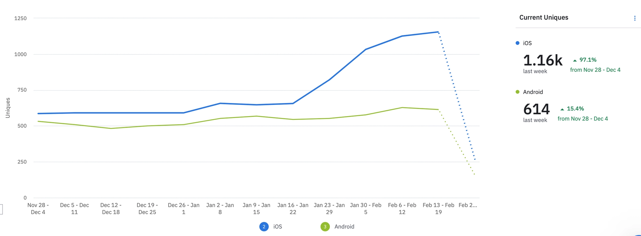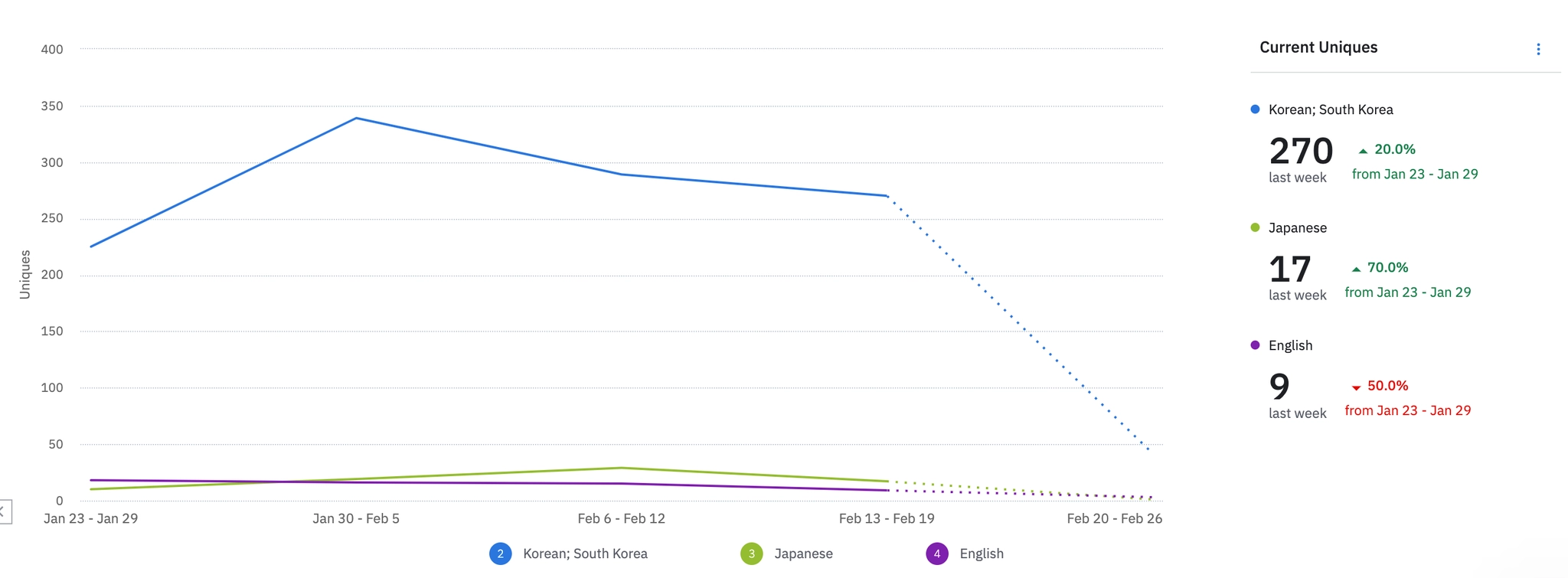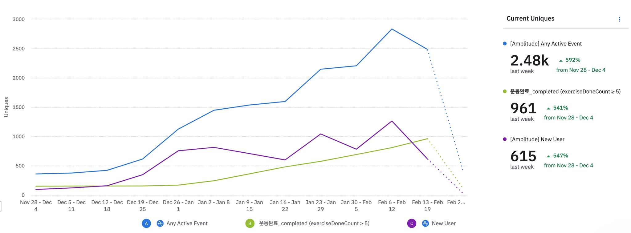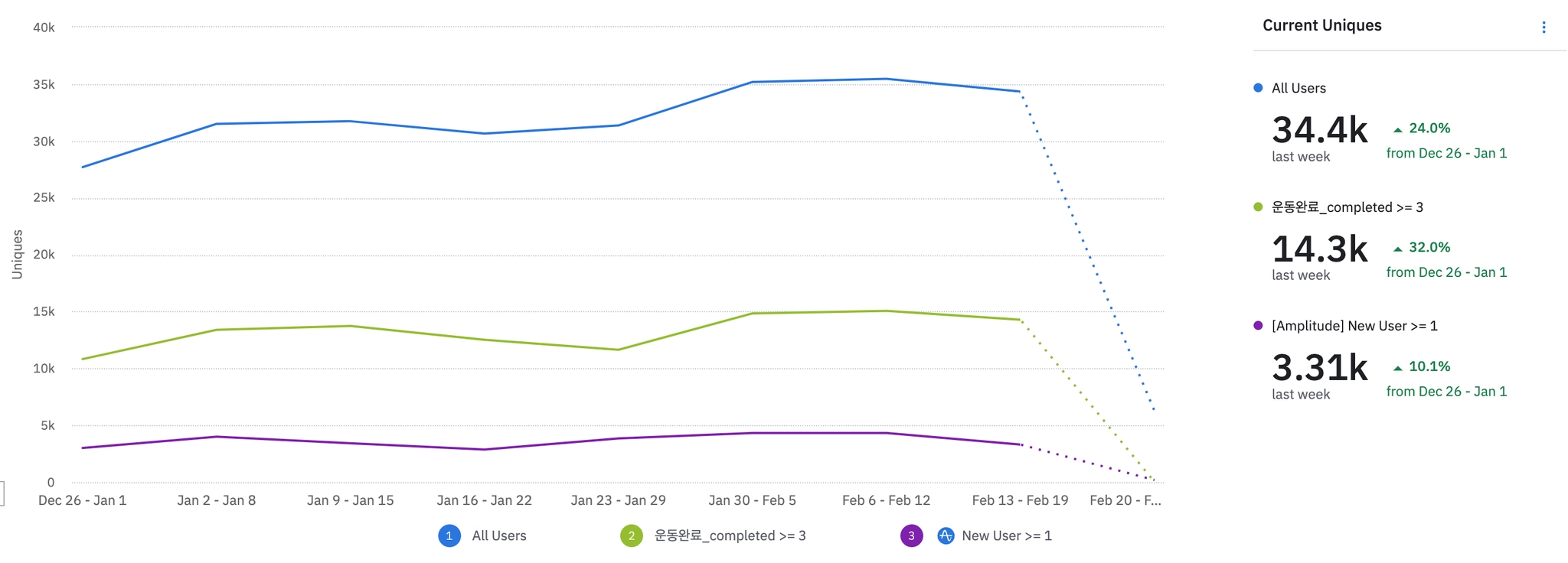 1월 3주차 | 2083 | ₩35,000 | 613 | ₩666,904 | 261 | -23.68% | 352 | -9.28% | ||