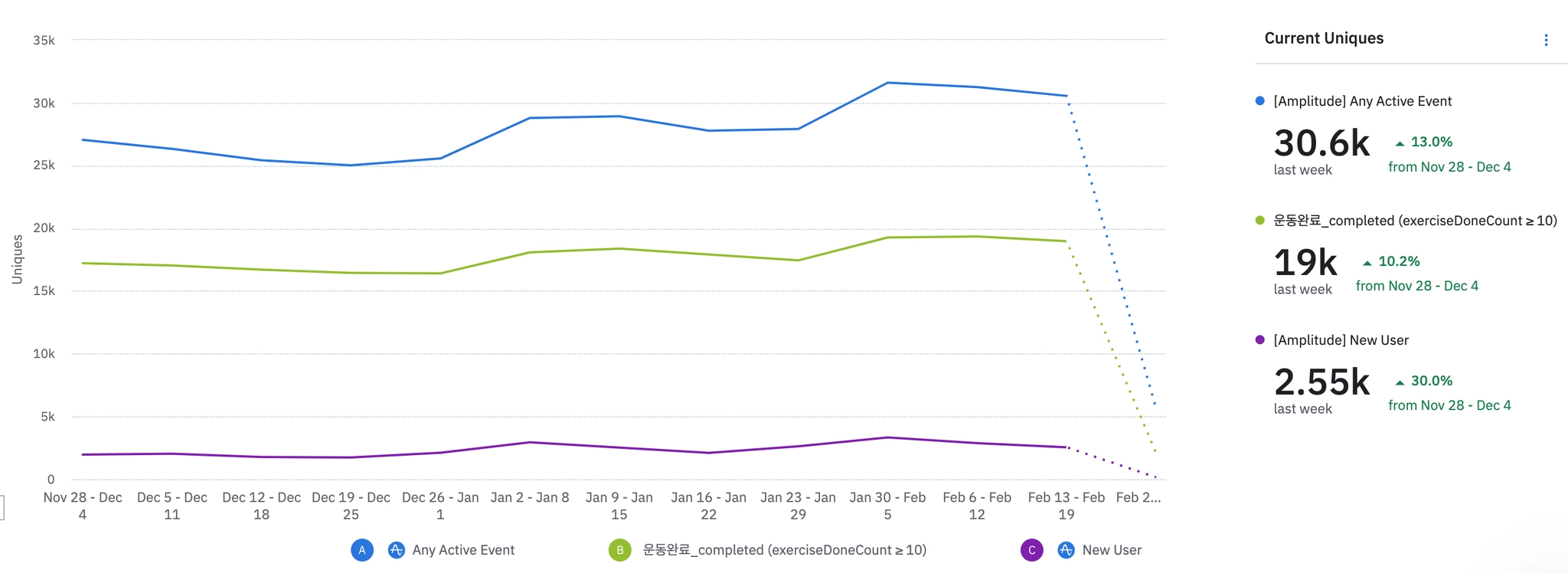 N.S.M - 일주일에 운동완료 3회이상한 유저 숫자