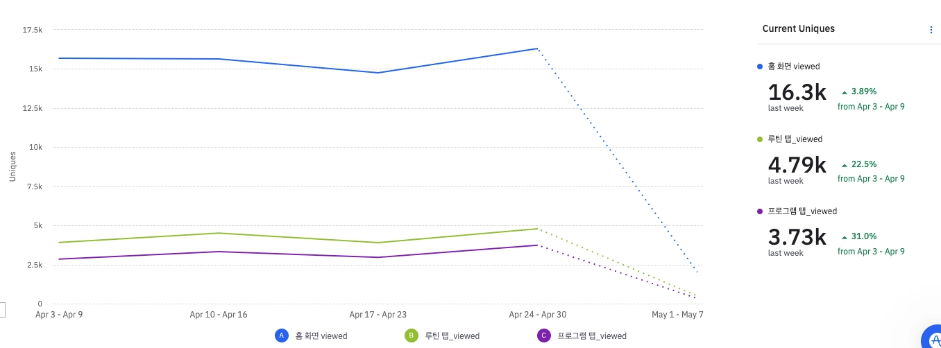 홈화면 탭 viewed 비율 (unique)