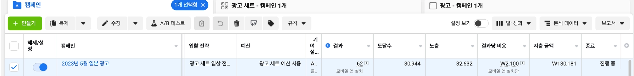 인스타 광고는 아직 집행 안하는 중. (일본 집행되는 상황 보며 유연하게)