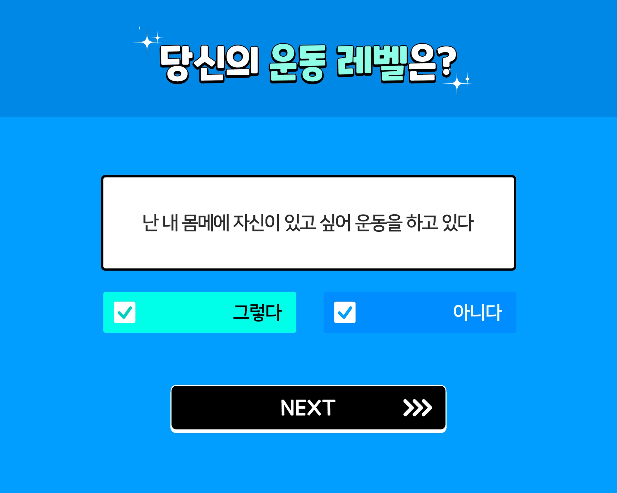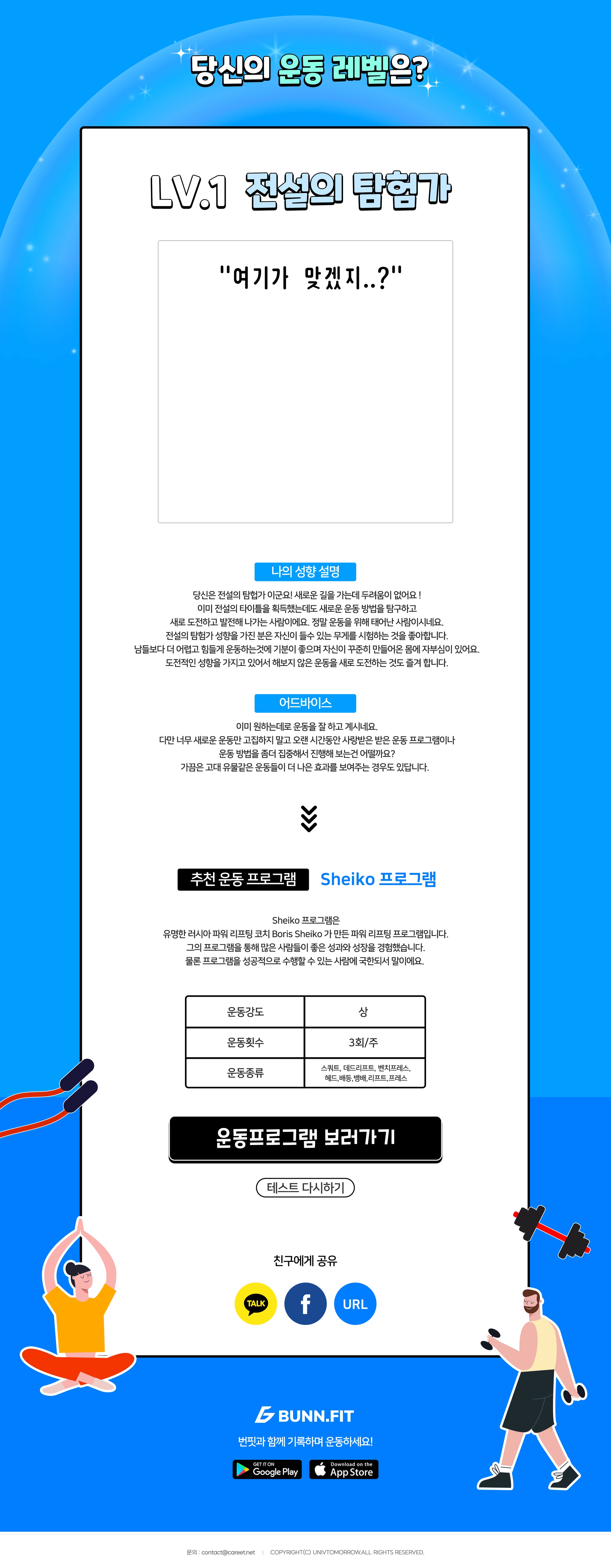 운동 성향에 따라 답이 나오고 이에 따른 운동 프로그램을 추천해 주는 방식으로 진행
