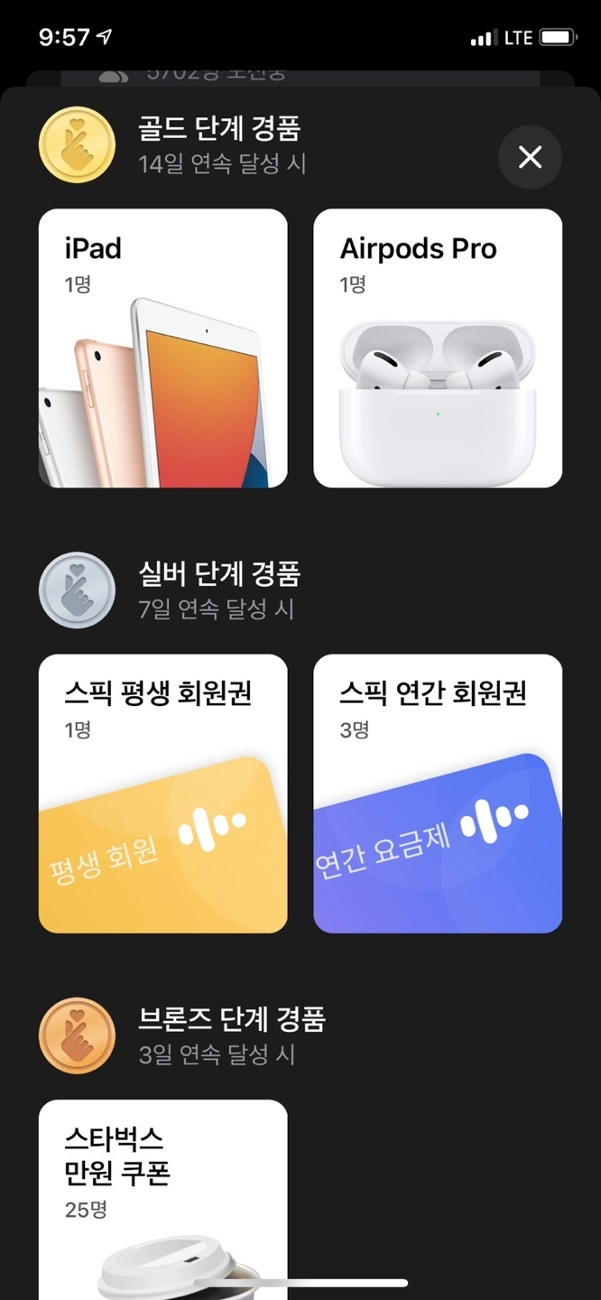 골드 등급의 경품은 무려 아이패드와 에어팟 프로!!