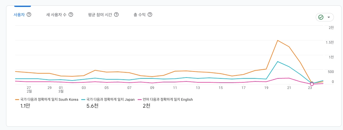 한국 신규유저 | 일본 신규유저 | 미국 & 캐나다 | |