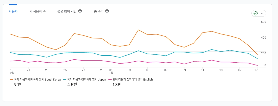한국 신규유저 | 일본 신규유저 | 미국 & 캐나다 | |