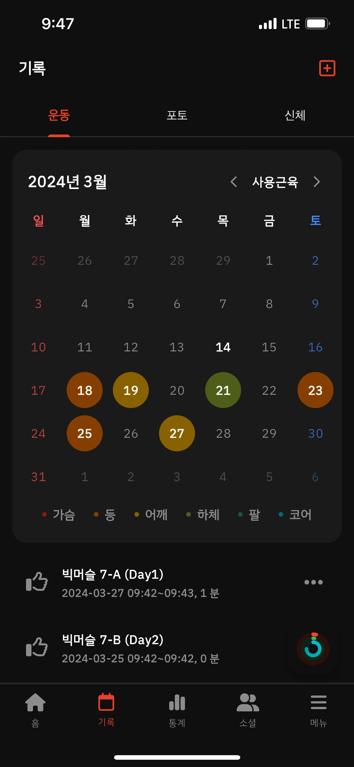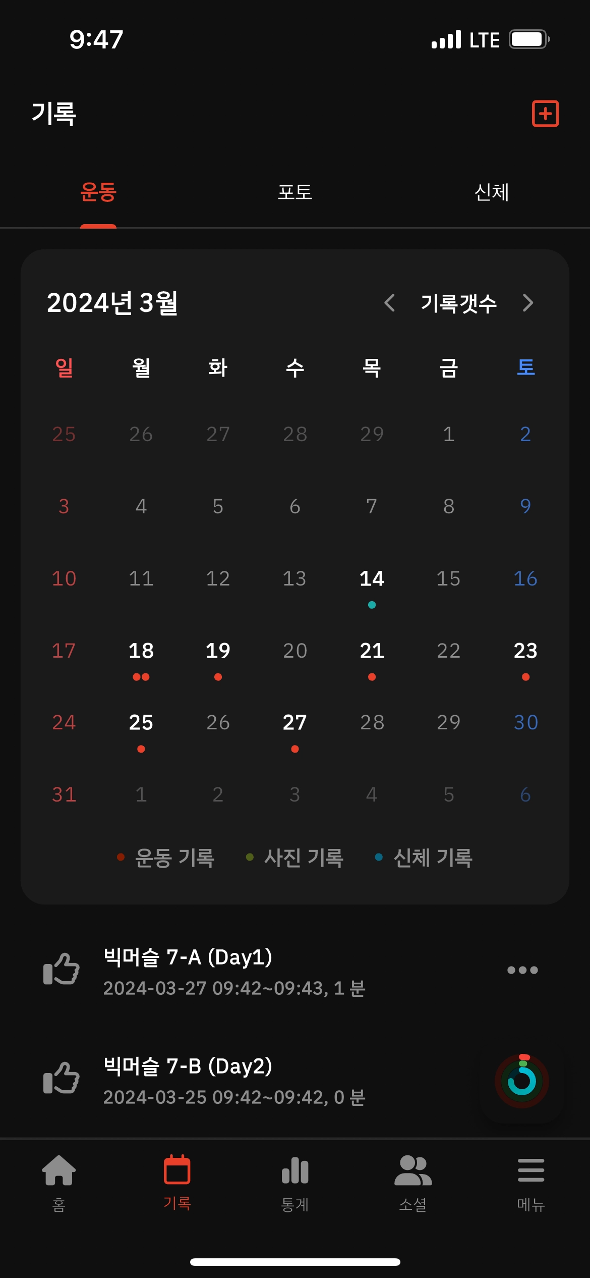 운동일지 기록에 필요한 건 대부분 갖추었다고 생각됨