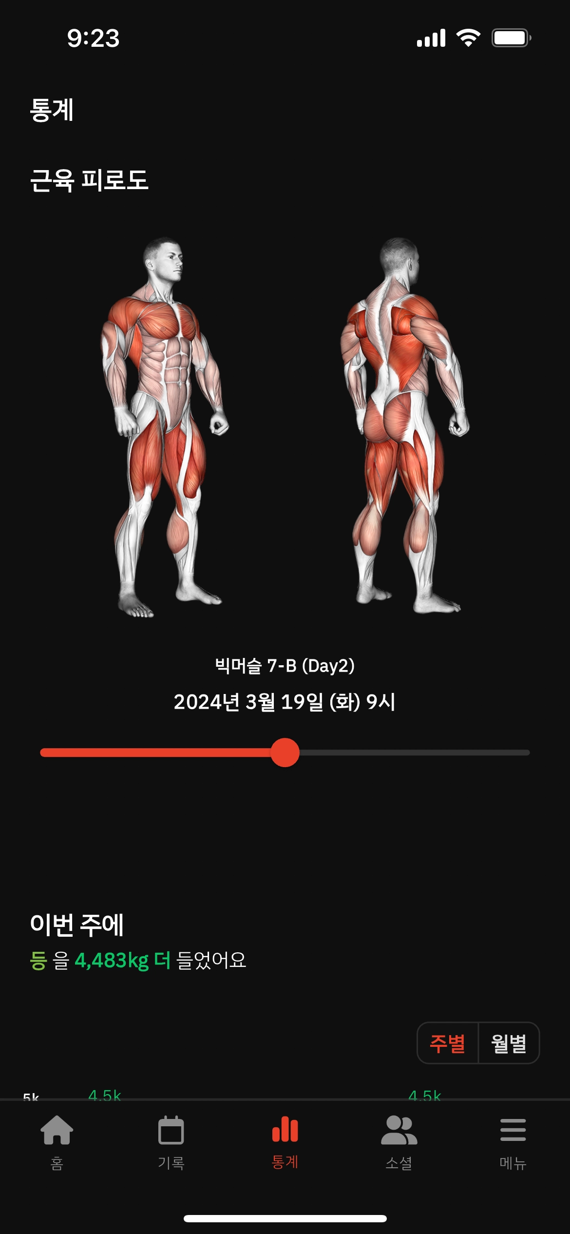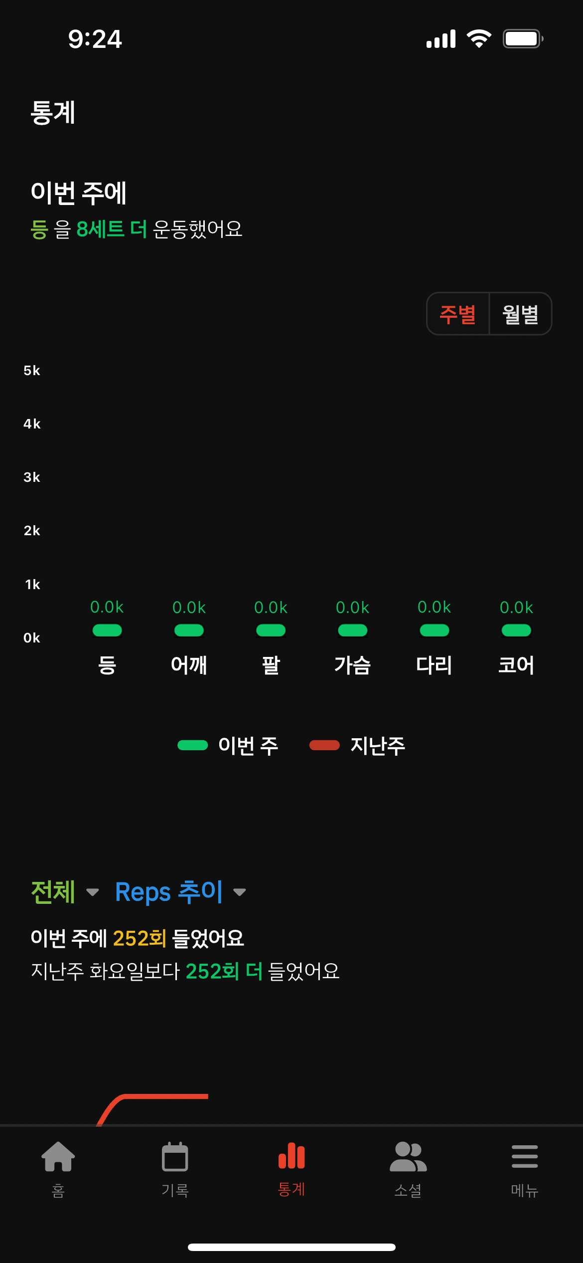 프로그램&추천 루틴 경우 매번 물어보면서 무게를 조절하는 것은 그나마 관리해주는 구나의 느낌까지는 있음 (Fitbod만큼의 느낌은 없으나)