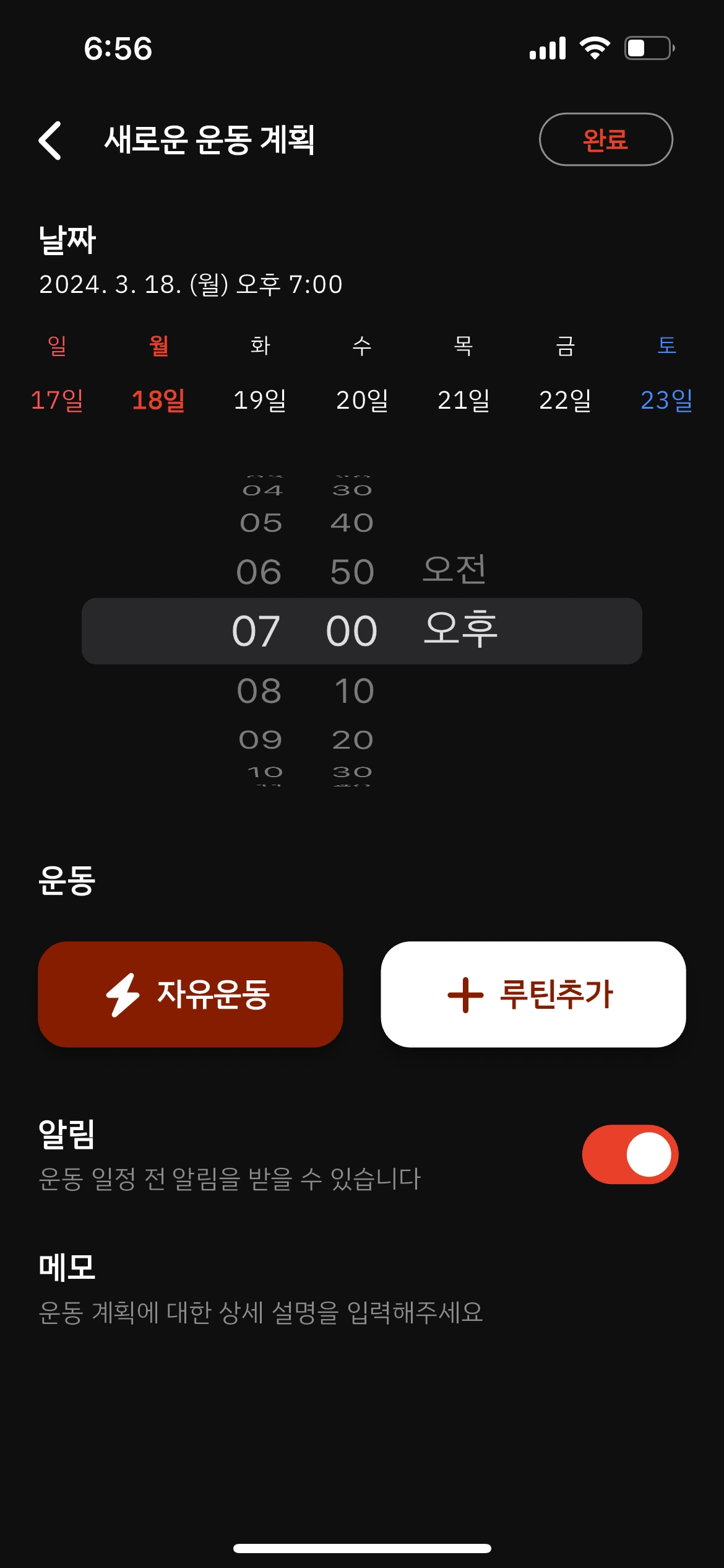 앱 설명: 운동일지를 더 쉽게 기록할 수 있게 하겠다.