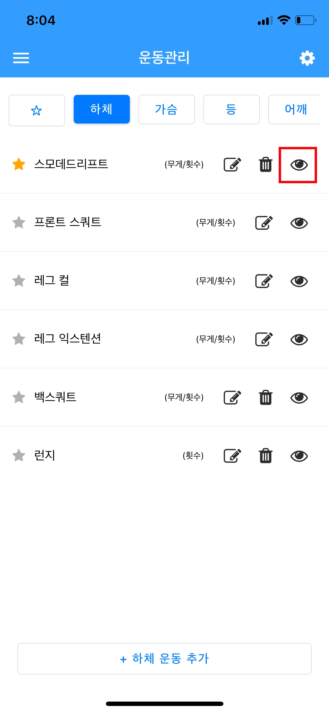 이제 운동관리 페이지의 눈 표시를 통해 계획 시 해당 운동이 리스트에 보일지를 결정할 수 있습니다.