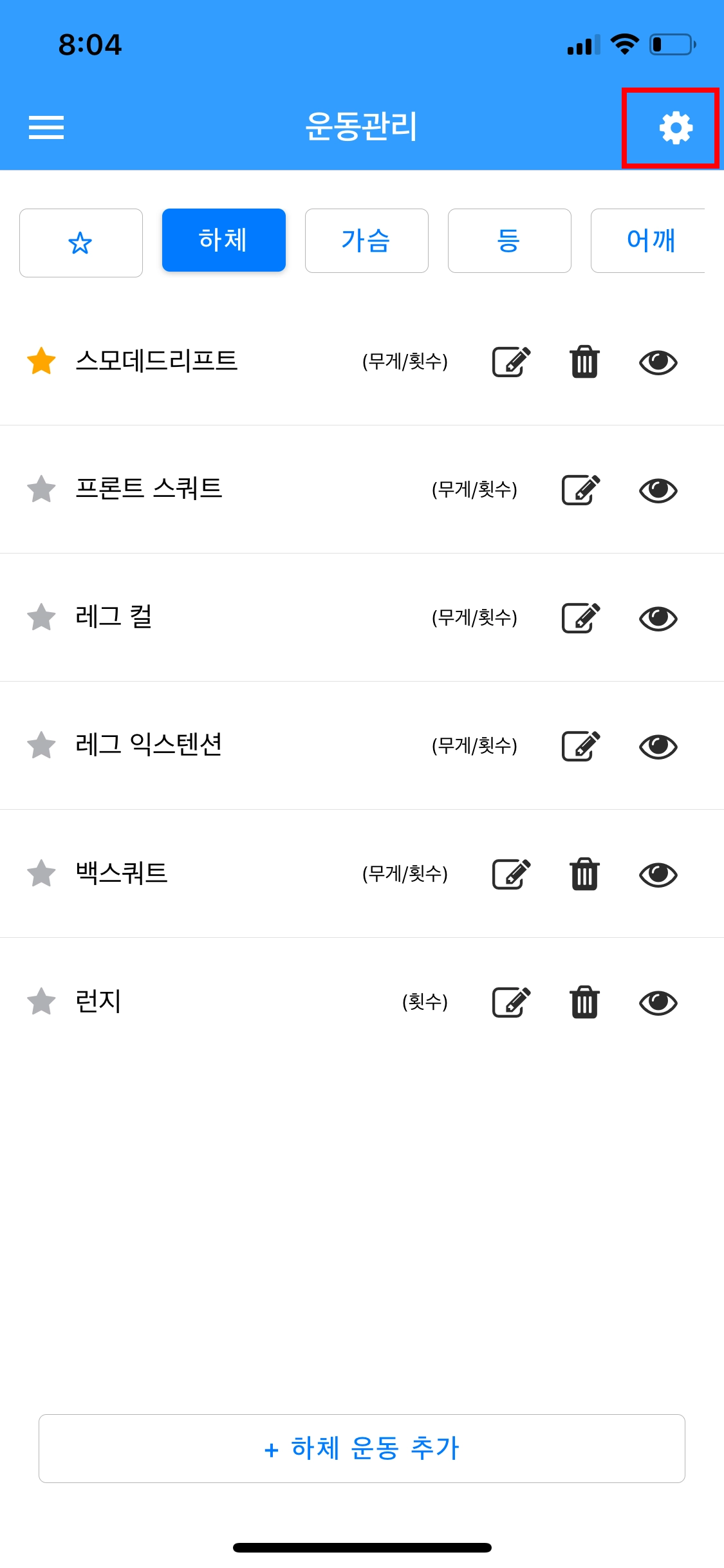 오른쪽 상단에서 운동 카테고리 설정 창에 들어 갈 수 있습니다.