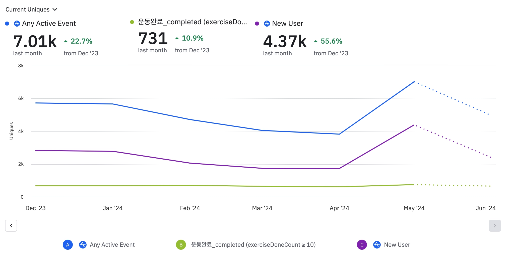 입소문을 통해 신규 유저들이 대거 유입되었습니다. 어느 채널에서 언급되었는지는 확인하지 못했습니다.